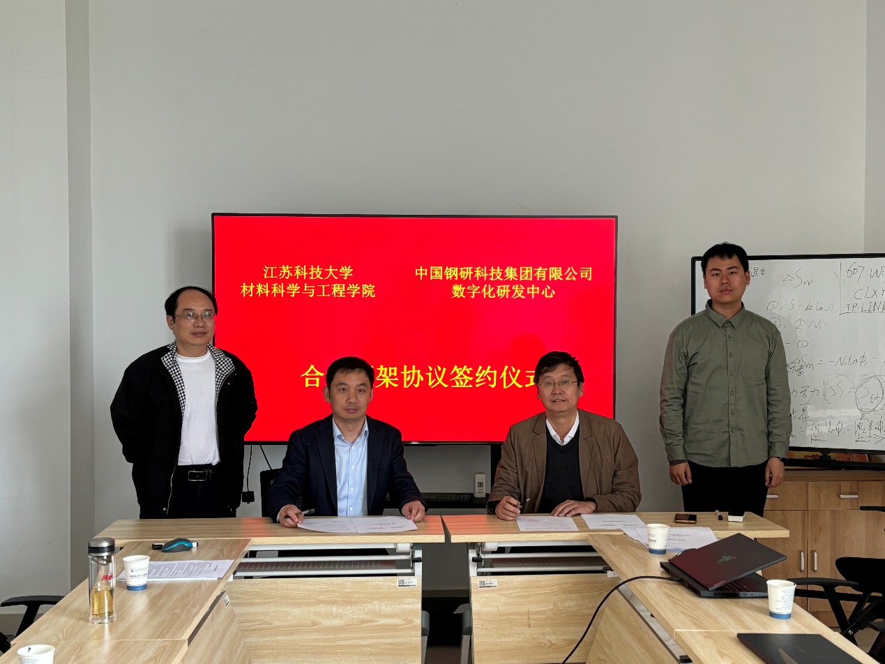为进一步深化产教研融合、校企合作,2024年4月10日,材料学院与中国钢研科技集团有限公司数字化研发中心在材料学院会议室签署了合作框架协议。钢研集团数字化研发中心主任苏航、材料学院院长晏超、党委书记李瑞峰、 首席科学家郭伟等出席签约仪式。
