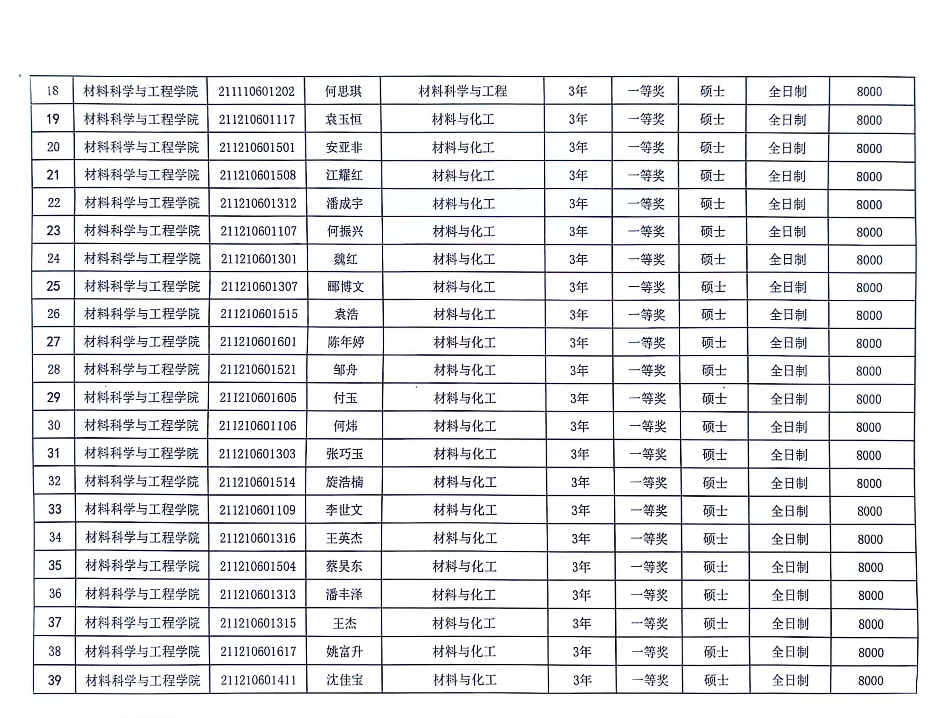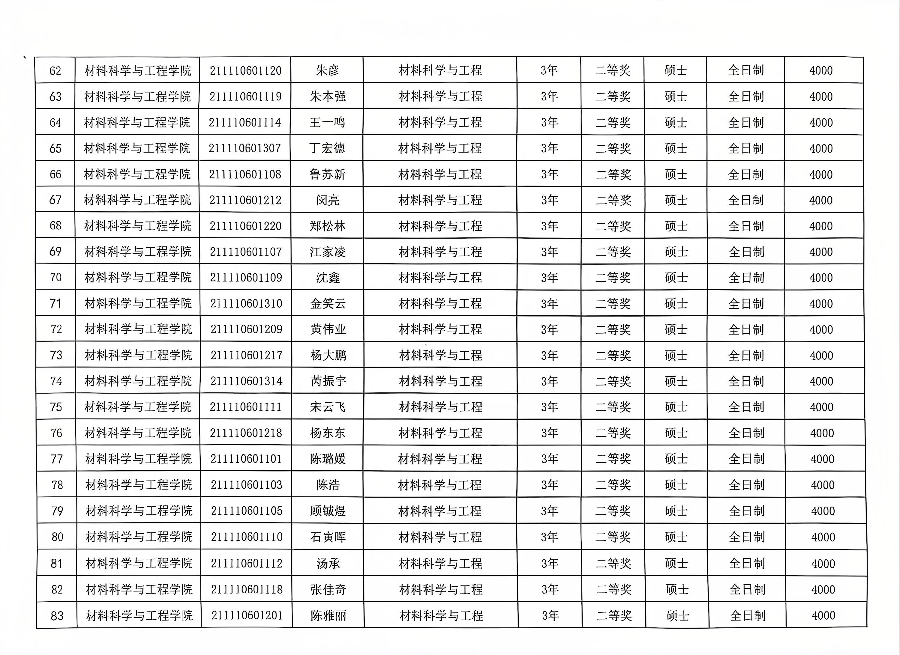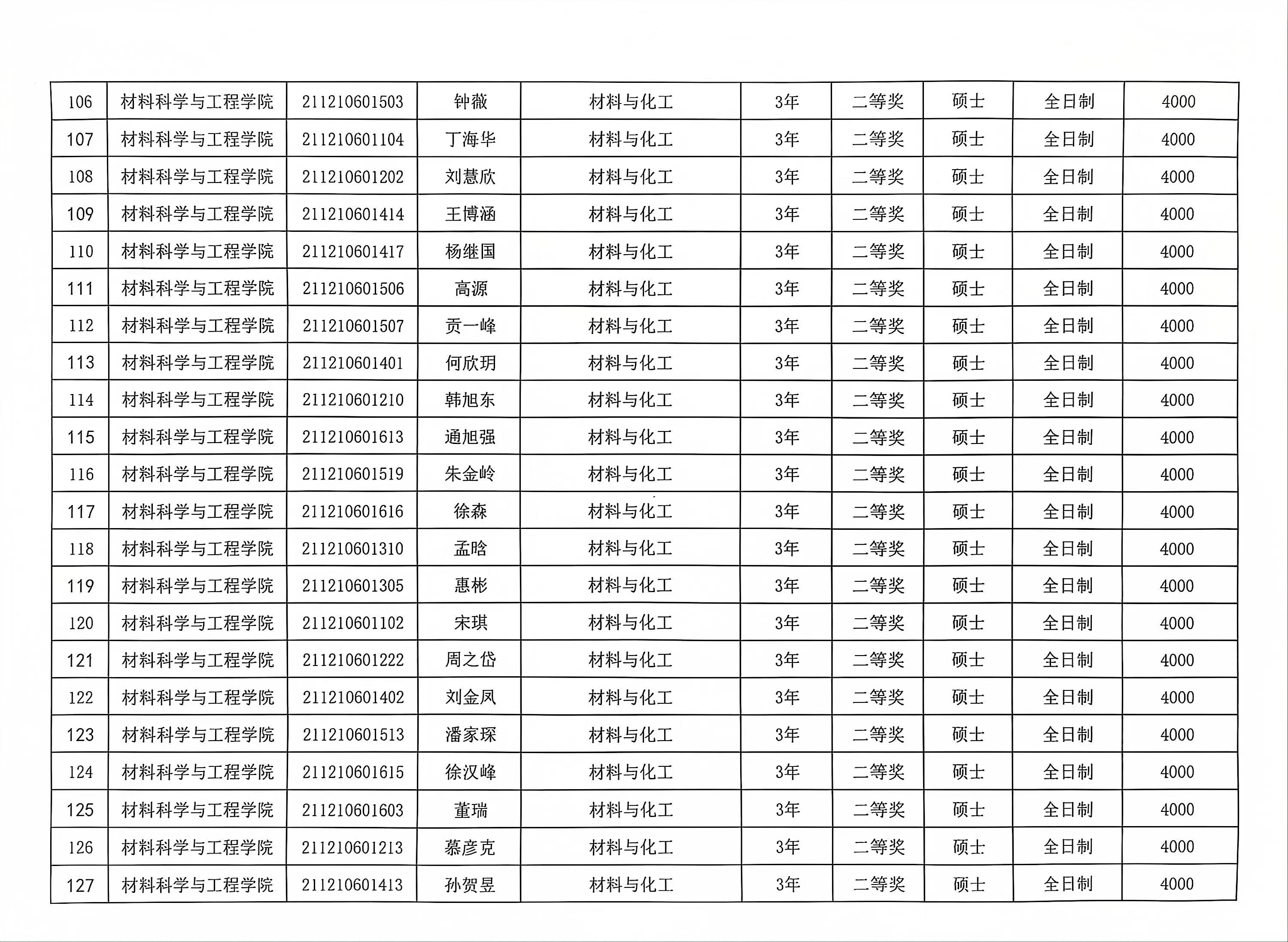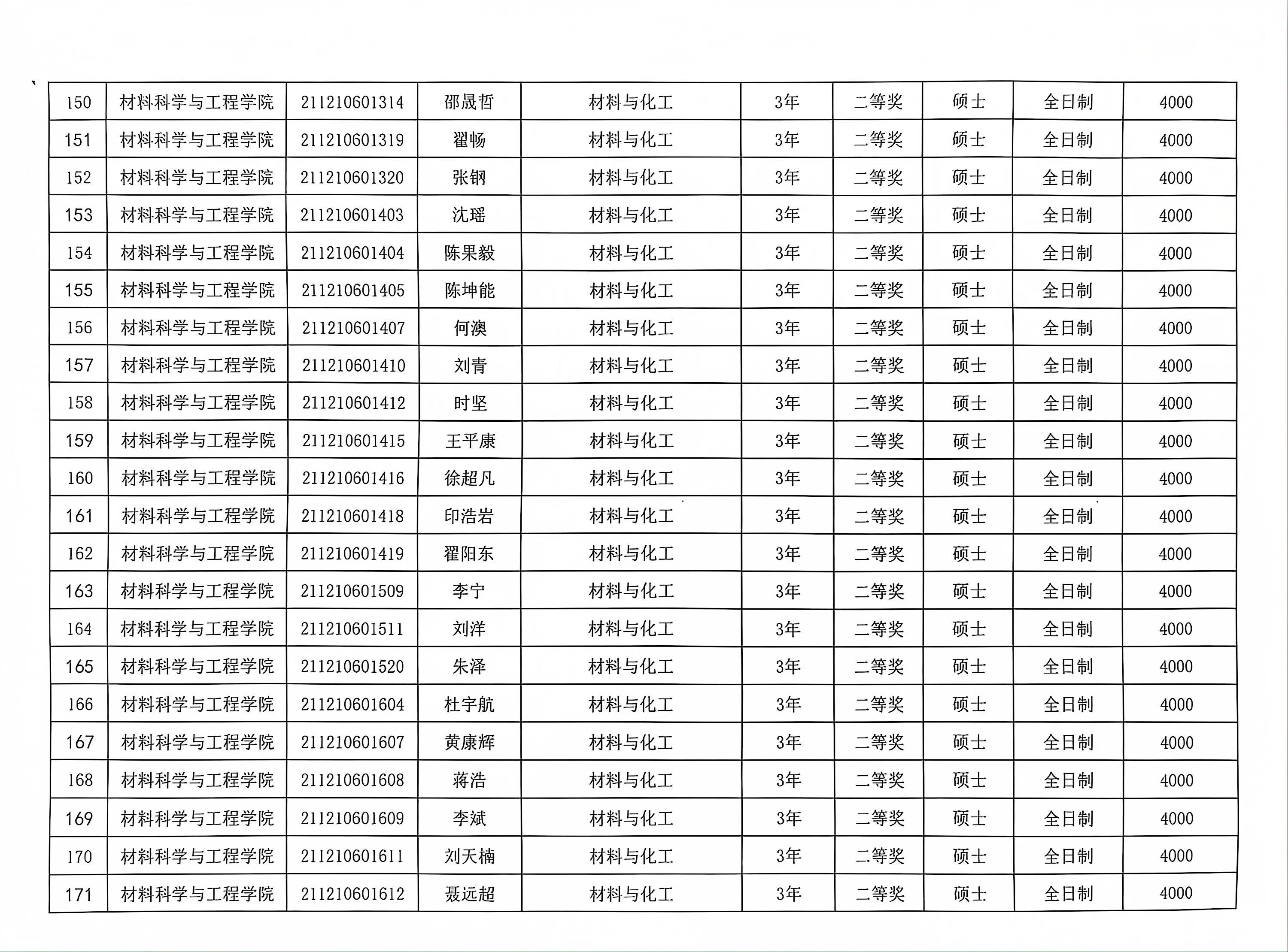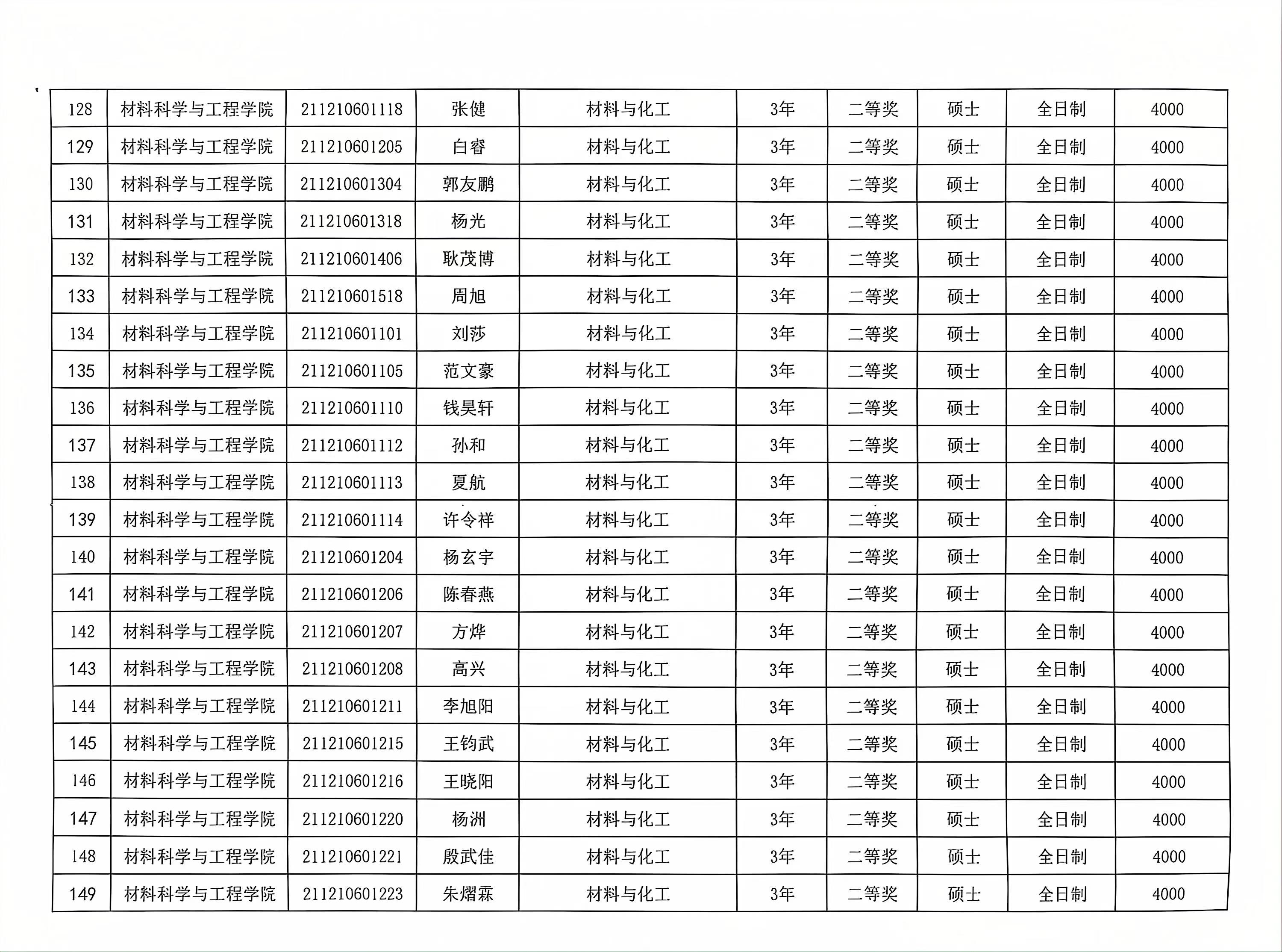 材料学院2023-2024学年春季学期研究生学业奖学金公示