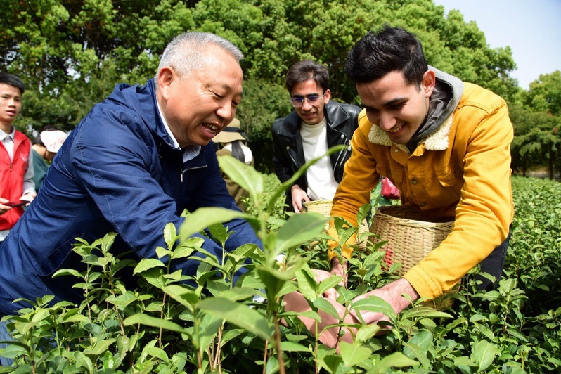 On the morning of April 12, students of Jiangsu University of Science and Technology walked into Zhenjiang Linyin Tea Expo Park to experience Chinese tea culture of picking and frying tea. This activity aimed to lead Chinese and foreign students to learn about tea culture and understand the charm of Chinese traditions.Foreign students from Morocco, Pakistan, Bangladesh, Turkmenistan, Ukraine and other countries, together with Chinese students, waist tea baskets in the tea ridge under the careful guidance of tea artists, learn to pick spring tea, understand the growth process of tea trees and t...