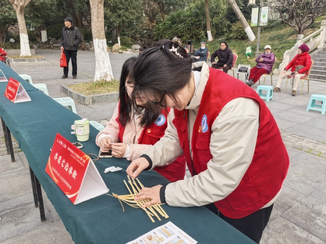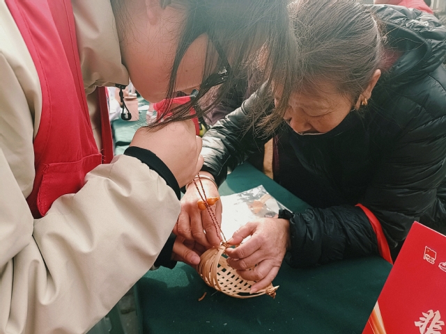 活动过程中,志愿者们首先向社区居民介绍了竹编龙舟的历史渊源和文化内涵,并演示了编织的基本技法。随后,在志愿者的耐心指导下,居民们纷纷动手尝试,从编织到成型,一步步完成自己的竹编龙舟。志愿者们用真诚的笑容和耐心的指导,点燃了居民们的参与热情,让大家在动手实践中,真切体会到传统手工艺的精妙与乐趣。