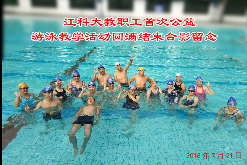 2018年7月11日至21日,由校工会组织,游泳协会承担的 教职工首次公益游泳教学活动获得圆满成功。此次活动由校工会组织,基于安全与游泳教学质量考虑,全校各分会报人数定为1人,共计22人实际参加了本次活动。通过10次课程,每个参加游泳学习的教职工基本都初步掌握了一种泳姿游泳基本技能,通过一个暑假的协会后续活动,有的教职工初步学会了3种泳姿。