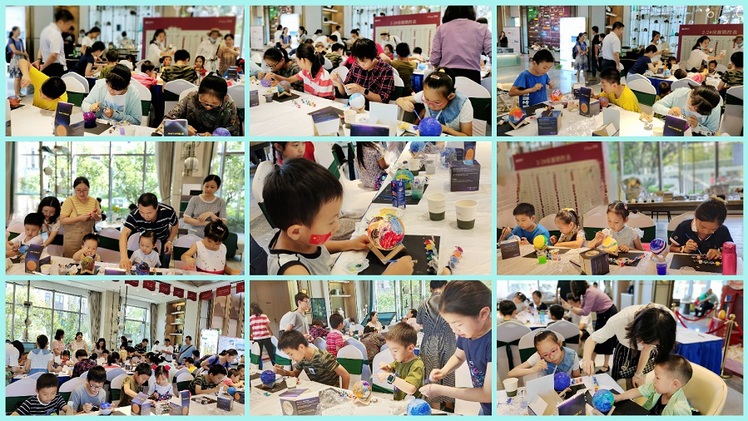 孩子们在父母的陪伴下,畅想浩瀚又神秘的宇宙,幻想成为星球小主,发挥想象力,用画笔精心描绘出属于自己的、独一无二的星球,其乐融融。彩绘结束,孩子们高举自己闪亮的星球灯,争相分享独特的创意,满满的童真童趣。
