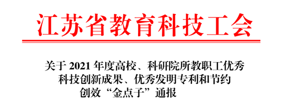 据悉,该评选活动是江苏省教育科技工会在全省高校、科研院所工会开展的申报推荐一线教职工优秀科技创新成果、优秀发明专利和节约创效“金点子”活动,旨在深入学习贯彻习近平新时代中国特色社会主义思想特别是习近平总书记关于工人阶级和工会工作重要论述精神,深入开展“科技创新、节约创效、服务创优”岗位立功竞赛,激发职工科技创新潜能和创造活力,组织动员广大教职工立足岗位、主动担当、众志成城、共克时艰,在新发展阶段“争当表率、争做示范、走在前列”,为奋力夺取疫情防控和实现经济社会发展目标“双胜利”贡献教科力量。经个人申报、各单位推荐、组织初审、专家评审、媒体公示等程序,共产生2021年度高校、科研院所一线教职工优秀科技创新成果8个,优秀发明专利5个,节约创效“金点子”10个。