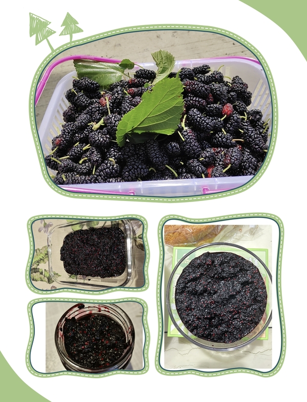 采摘结束,大家意犹未尽,兴致勃勃地谈论桑葚存放小常识,分享桑果酒、桑果汁、桑果酱等的制作方法。朱宇坤老师还精心录制了桑果酱制作的示范讲解视频,校工会剪辑分享,大家纷纷尝试制作。