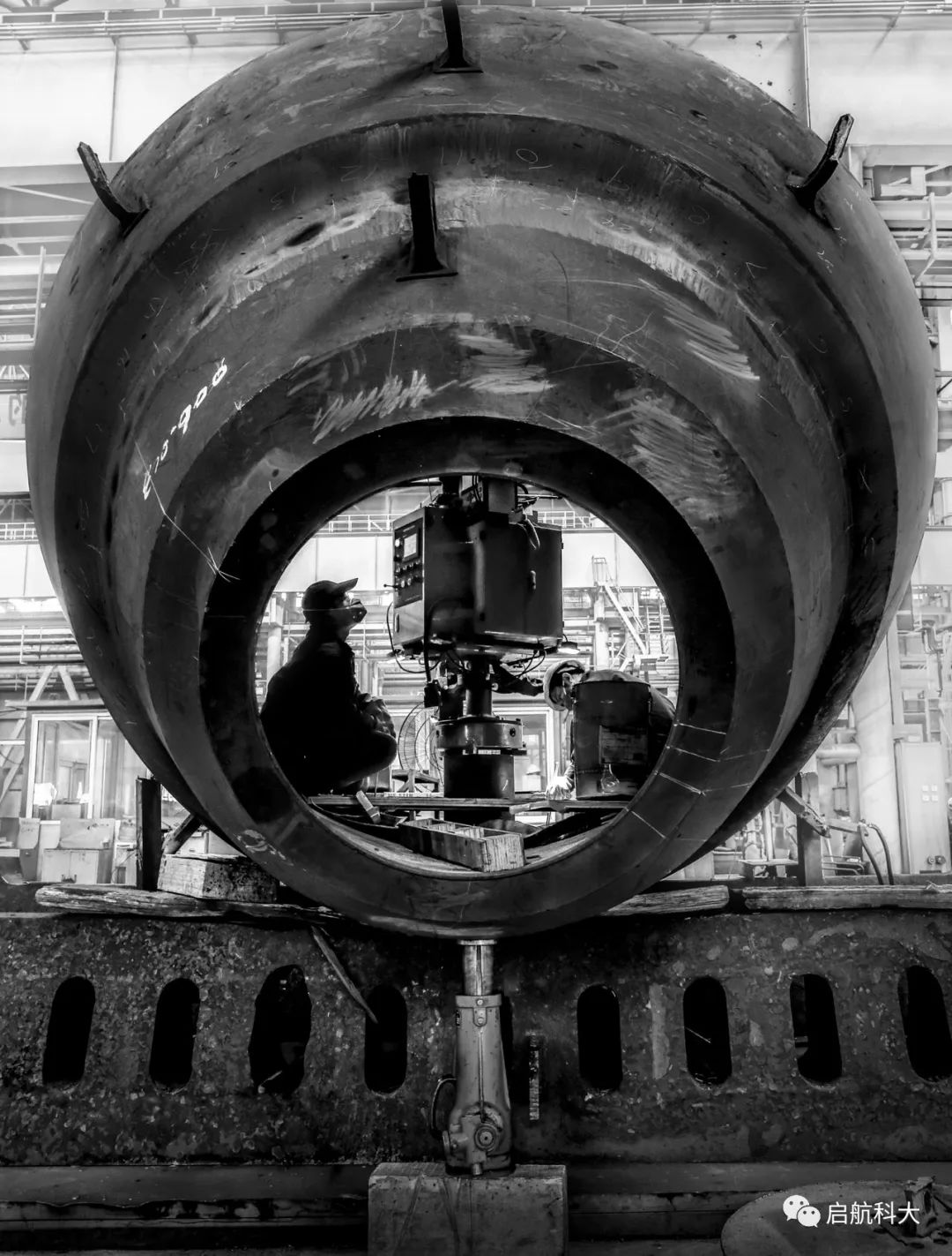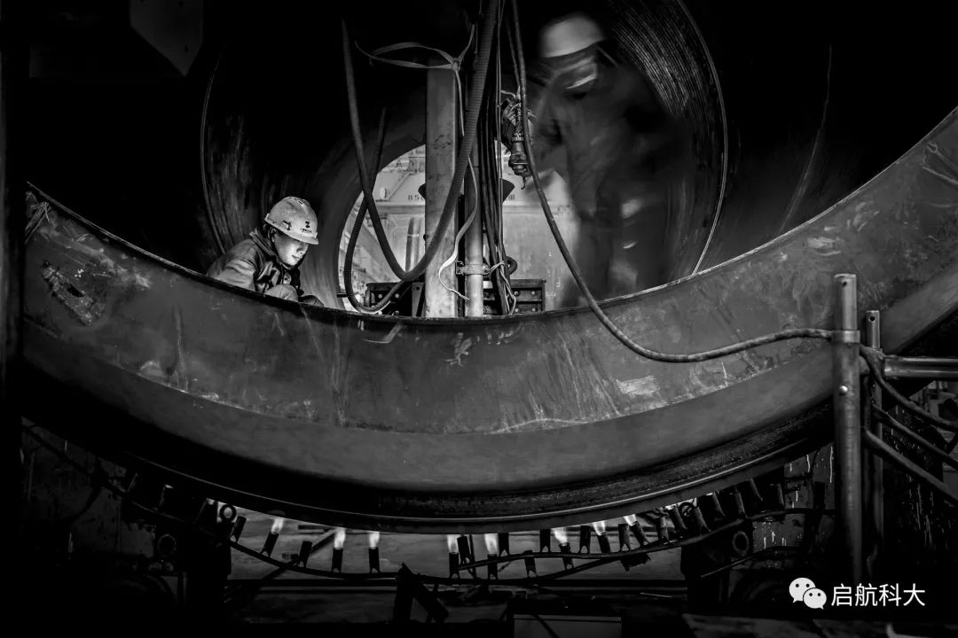 面对重型制造类的工业主题,影像表达着重在光线动感、结构元素、场景渲染、人物情感等四个方面去探索,艺术化地提炼出大国重器国际领先的制造技术和唯美生动的劳动美。譬如:拍摄巨型压力容器分段吊装场景,从正面视角去构思画面,徐徐移动的圆形分段在画幅中逐渐重叠交错,构成圈圈相映、重叠变幻的结构形态,抒写重复韵律之美;车间的劳动者与巨型工件构成小与大、点与曲线的节奏之美。精彩的场景,需要拍摄者去观察、发掘、等待、抓取,用摄影语言去呈现,作品就会变得与众不同。当你思索、预判到的场景,才有机会捕捉到,摄影艺术的魅力大概在此。