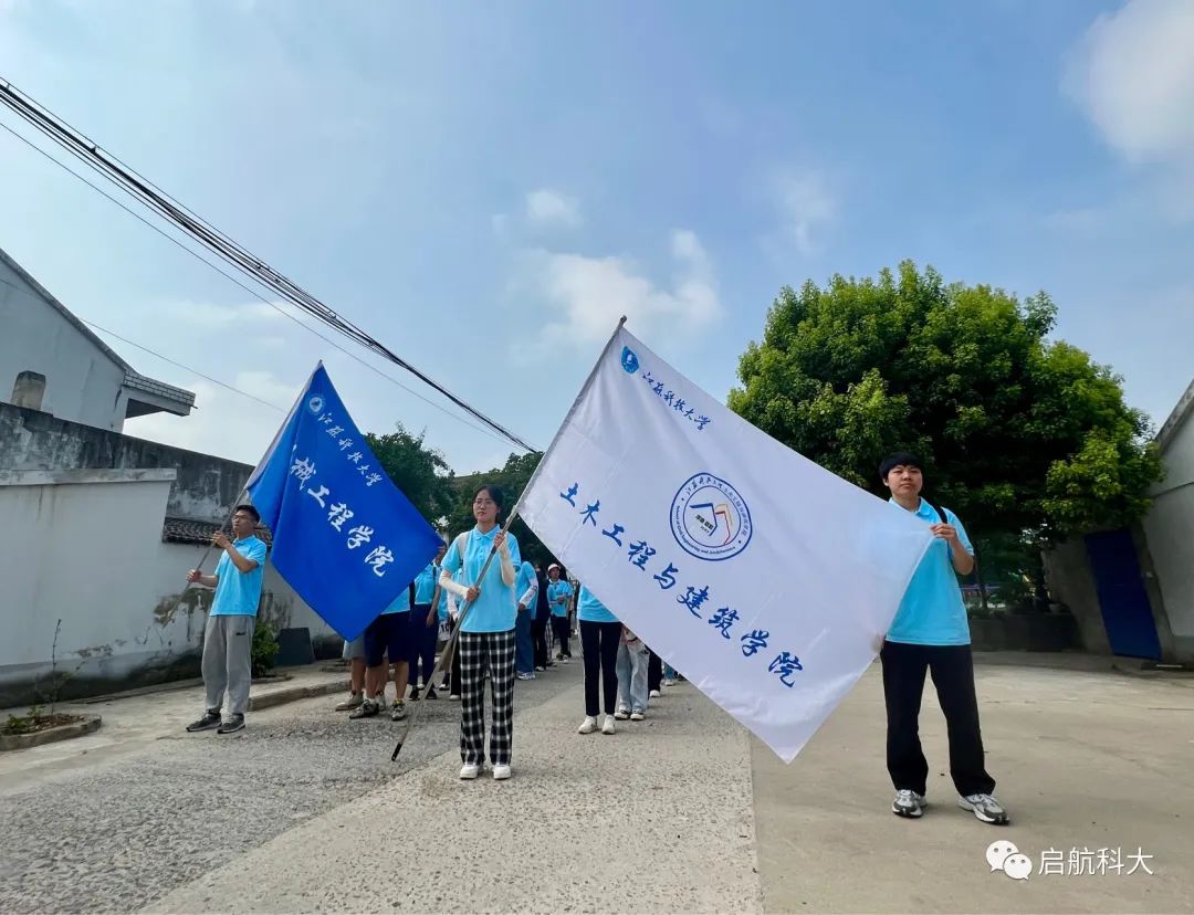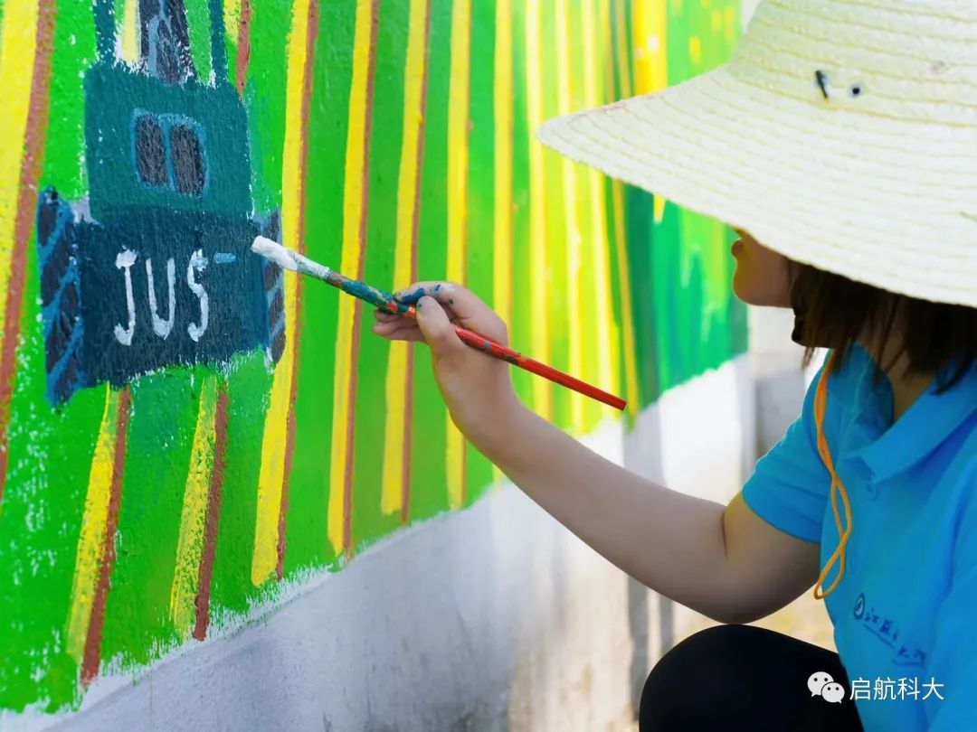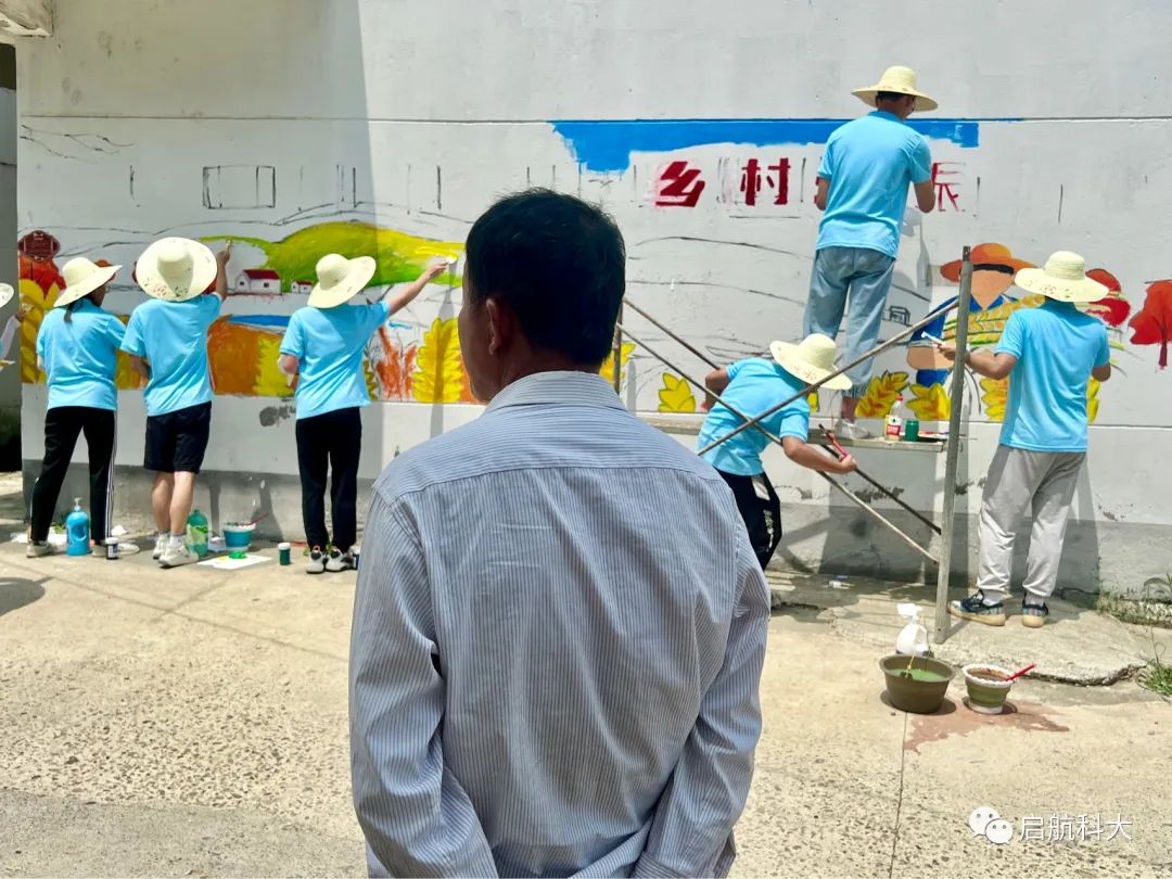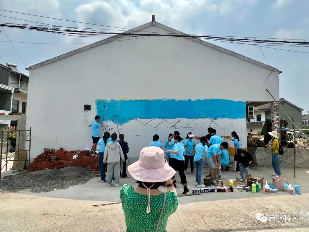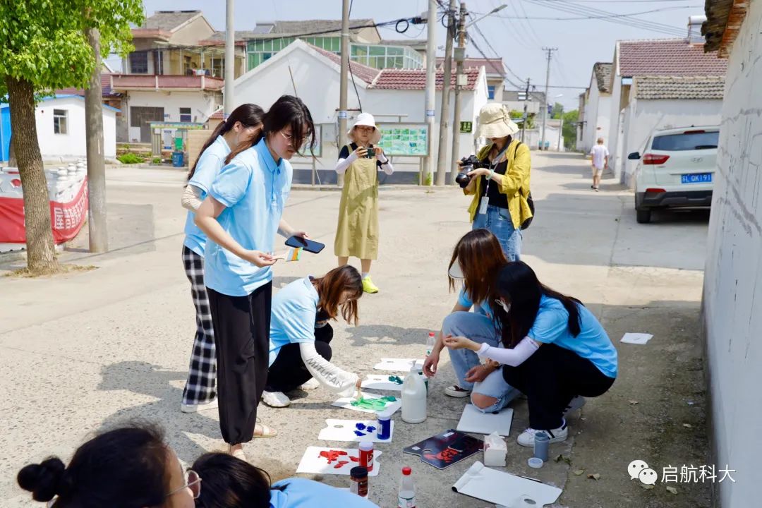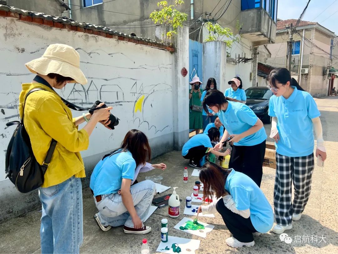 6月21日上午, 机械工程学院和土木工程与建筑学院组织30余名师生赴镇江市丹徒区宝堰镇宝堰村开展“手绘乡村.青春行动”主题社会实践活动。校摄协3名老师一同随行,记录大学生投身乡村文化建设的精彩瞬间。