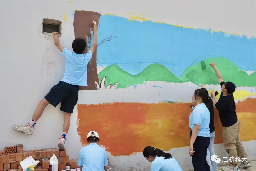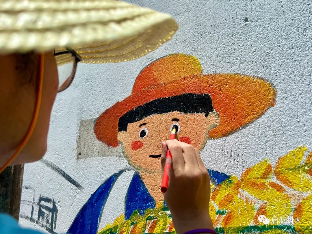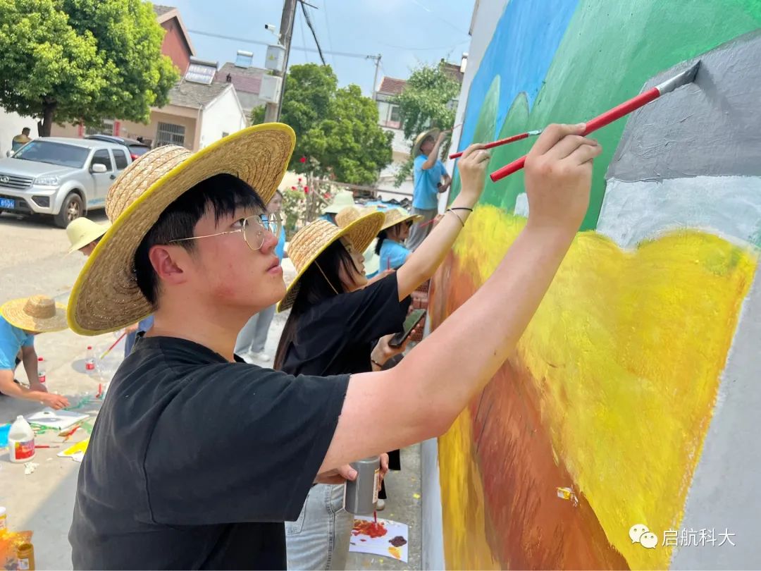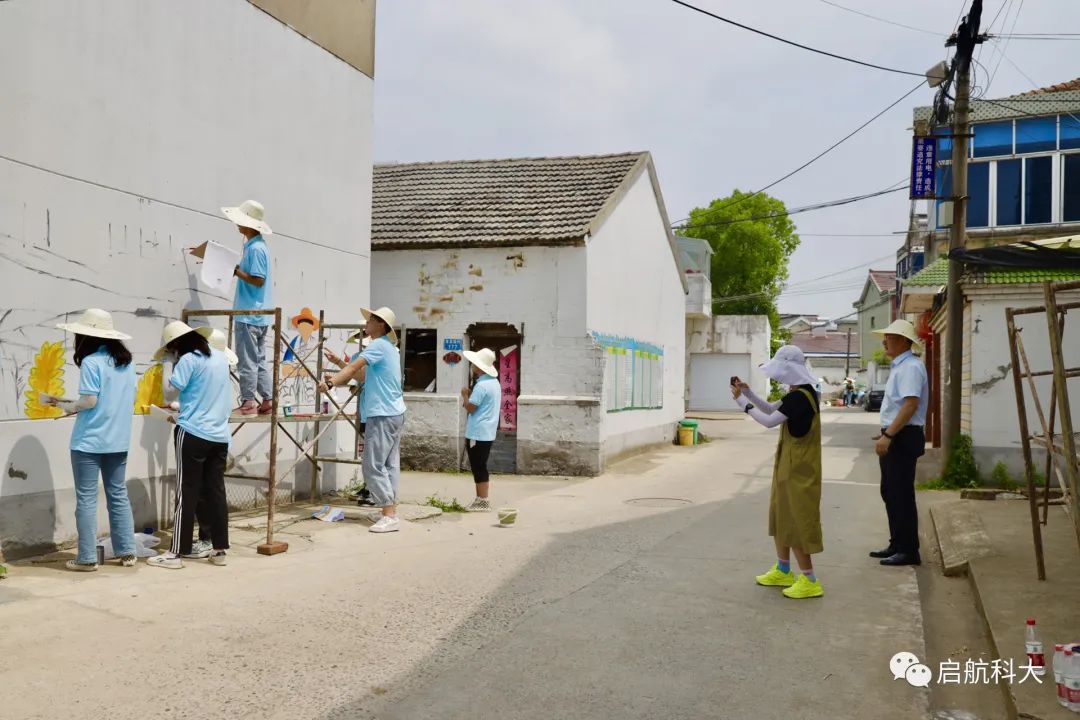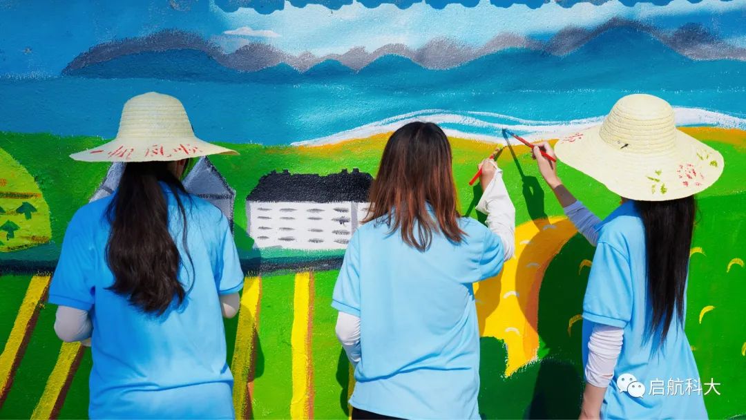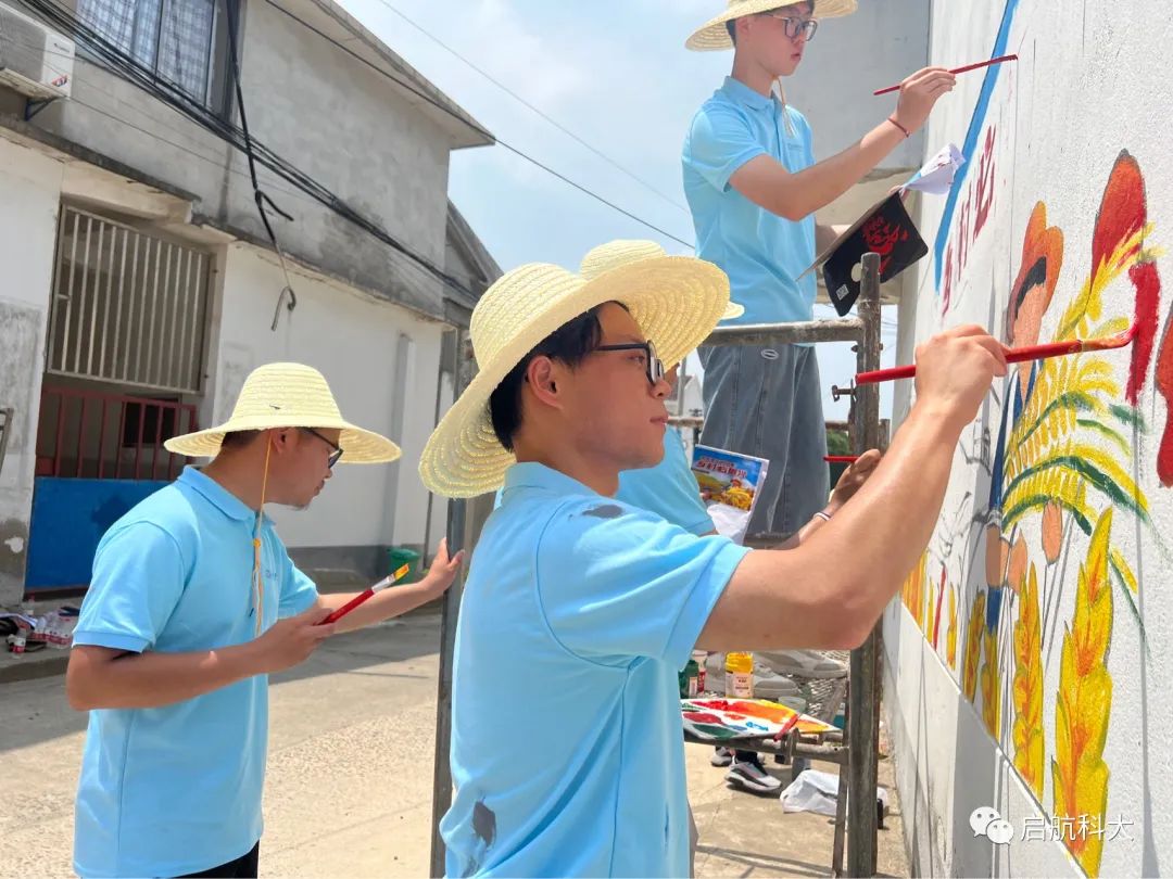 6月21日上午, 机械工程学院和土木工程与建筑学院组织30余名师生赴镇江市丹徒区宝堰镇宝堰村开展“手绘乡村.青春行动”主题社会实践活动。校摄协3名老师一同随行,记录大学生投身乡村文化建设的精彩瞬间。