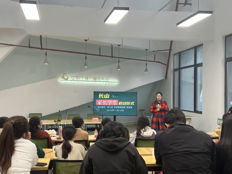 11月18日,长山校区女职工康乃馨服务站暨美育中心内,来自全校各部门逾40位教职工济济一堂,不畏深秋寒冷,前来参加“长山家长学堂”首场活动。校侨联主席、校工会党支部书记、原常务副主席郭永强,马克思主义学院教授魏敏,校党委统战部办公室主任居凌云应邀参加活动。活动由校工会副主席、校女工委副主任刘剑主持。