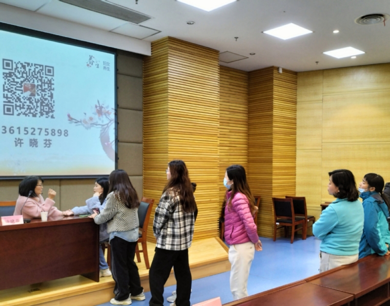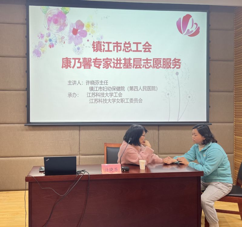 3月23日下午,镇江市总工会康乃馨专家许晓芬主任走进 ,从中医角度谈女性养生,全校约百余位女教职工和女学生代表聆听讲座,校工会副主席刘剑主持。