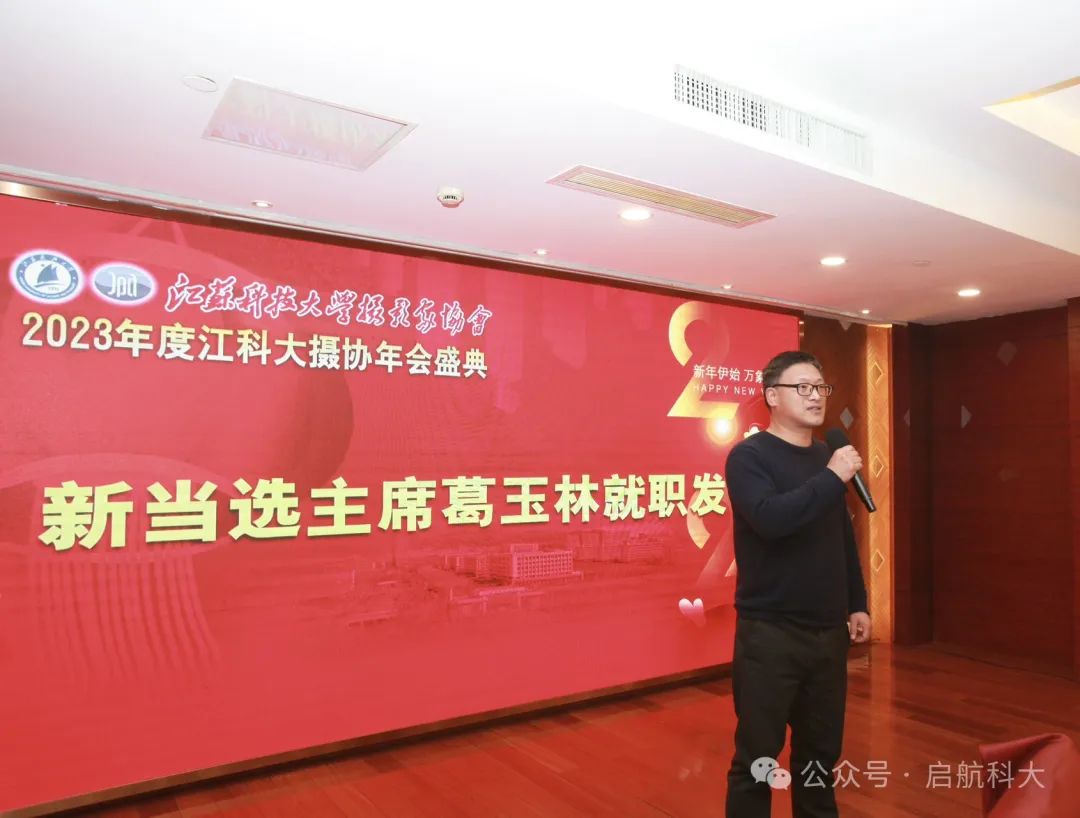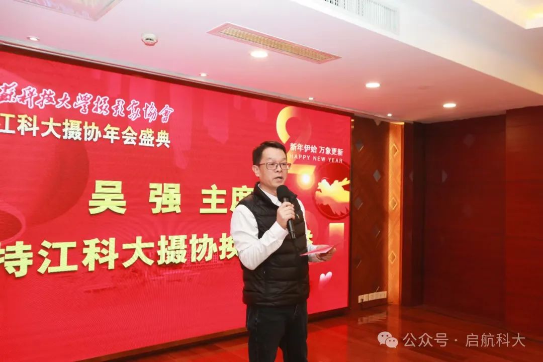 1月16日下午, 摄影家协会2023年会在观海楼大酒店召开。原校党委副书记、工会主席景旭文、镇江市摄影家协会主席任国卿、原校工会常务副主席魏有章、原校工会常务副主席郭永强以及各赞助单位代表出席会议。学校各相关职能部门领导、镇江市摄影界同仁到会祝贺。会议由摄协张冬冬老师和陆瑶老师主持。