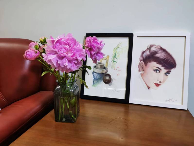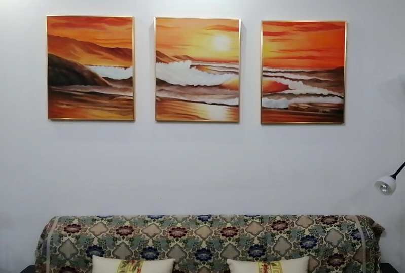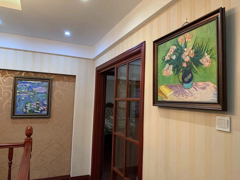 随着审美能力的增强和绘画技艺的提升,协会会员们纷纷开始用自己的绘画作品布置家庭的居室。甚至还有会员专门为自家客厅“量身定制”画作。协会会员们的举动为自己的家庭生活平添了一份意想不到的温馨和幸福。以下图片展示了会员们用自己的画作布置居室后的场景: