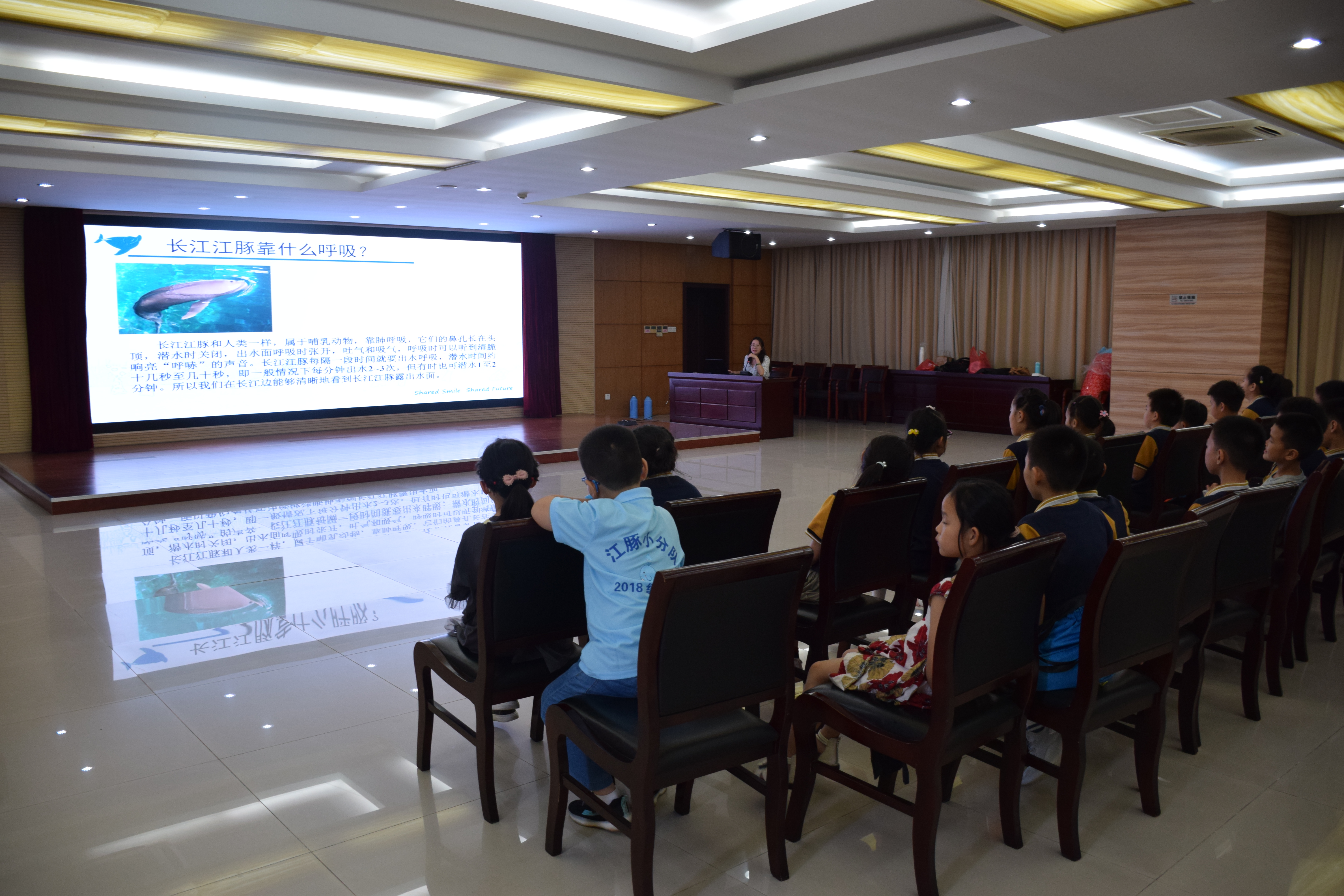 为贯彻落实习近平总书记提出的长江要“共抓大保护,不搞大开发”的指示精神,提高小学生保护江豚、保护长江生态的意识,在环化学院团委、关工委的指导下,7月23日,镇江市实验小学的二十余名小学生在 环保协会大学生的带领下走进镇江市农业农村局,开展了一场寓教于乐的江豚保护科普活动,学院关工委秘书长喻永光老师参加了此次活动。