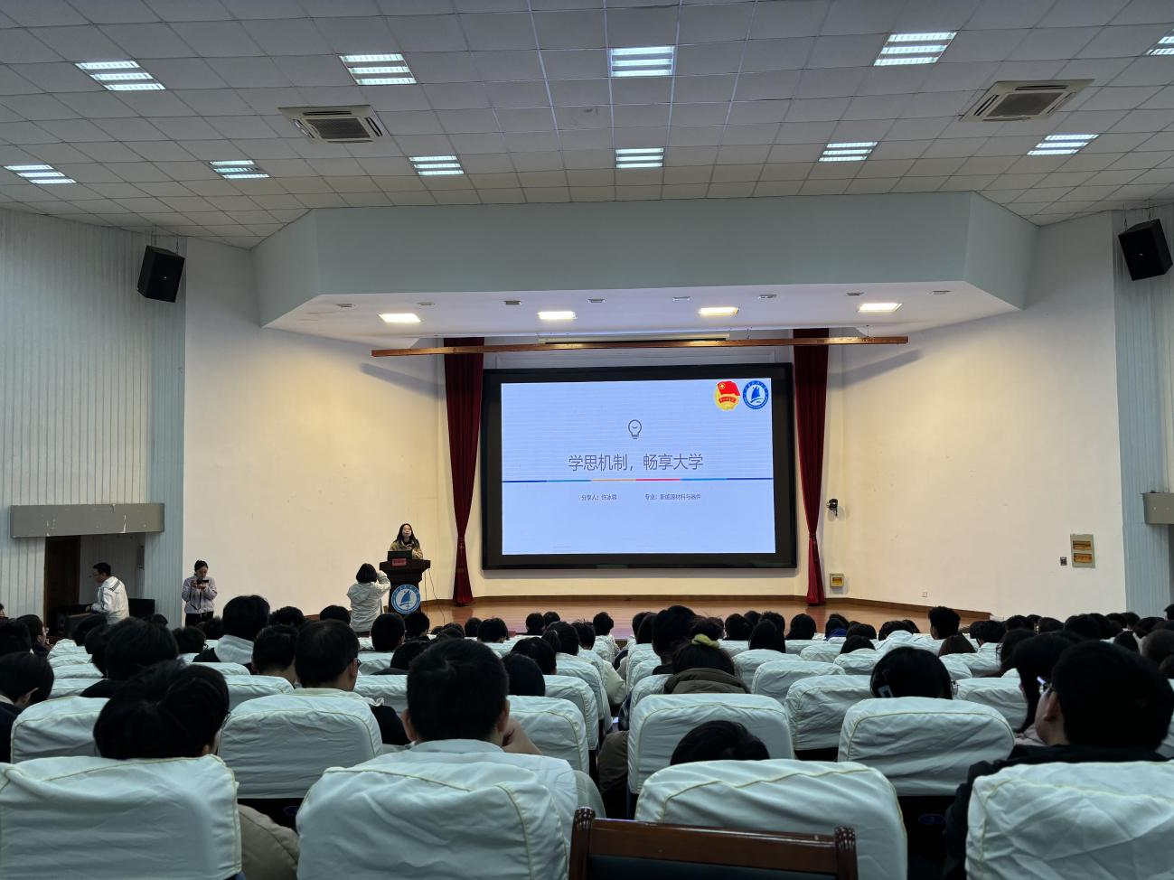 为促进学风建设和学业发展,发挥优秀榜样力量,帮助新生更好地适应大学学习与生活,进一步明确学习目标,做好大学学习规划,11月24日晚,环境化学与工程学院在梦溪校区演讲厅举行“长山漫谈”之优秀学子经验分享会,邀请环化学院优秀学长为大一新生带来精彩分享。环化学院辅导员杨文、王萌,深蓝学院辅导员李航出席本次分享会。