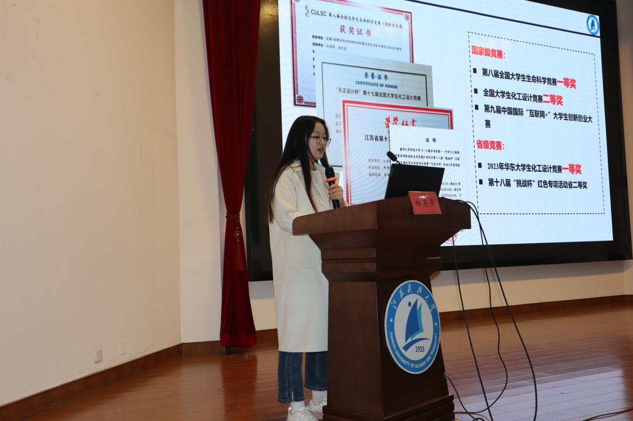 作为学院推免生代表的邹煦阳、杜荣荣学长为新生们分享了保研和竞赛经验。从选择学校到进入夏令营再到填报院校,杜荣荣将自己的保研过程一一拆分、讲解和分享,建议同学们要提前了解并格外重视自己想要保研的目标学校的申请条件,及时联系感兴趣的老师,充分准备所需材料。邹煦阳则主要分享竞赛经验。在大一上学期就加入老师课题组的他对科创竞赛有很深的理解与感受,邹煦阳指出“参加的每一次竞赛都是自己在已知方面的理解巩固、在未知方面的开拓发展”,他鼓励同学们要以不惧困难、团结合作、勇往直前的精神多多参加竞赛活动,并通过课外实践活动培养并提升个人多方面的能力。