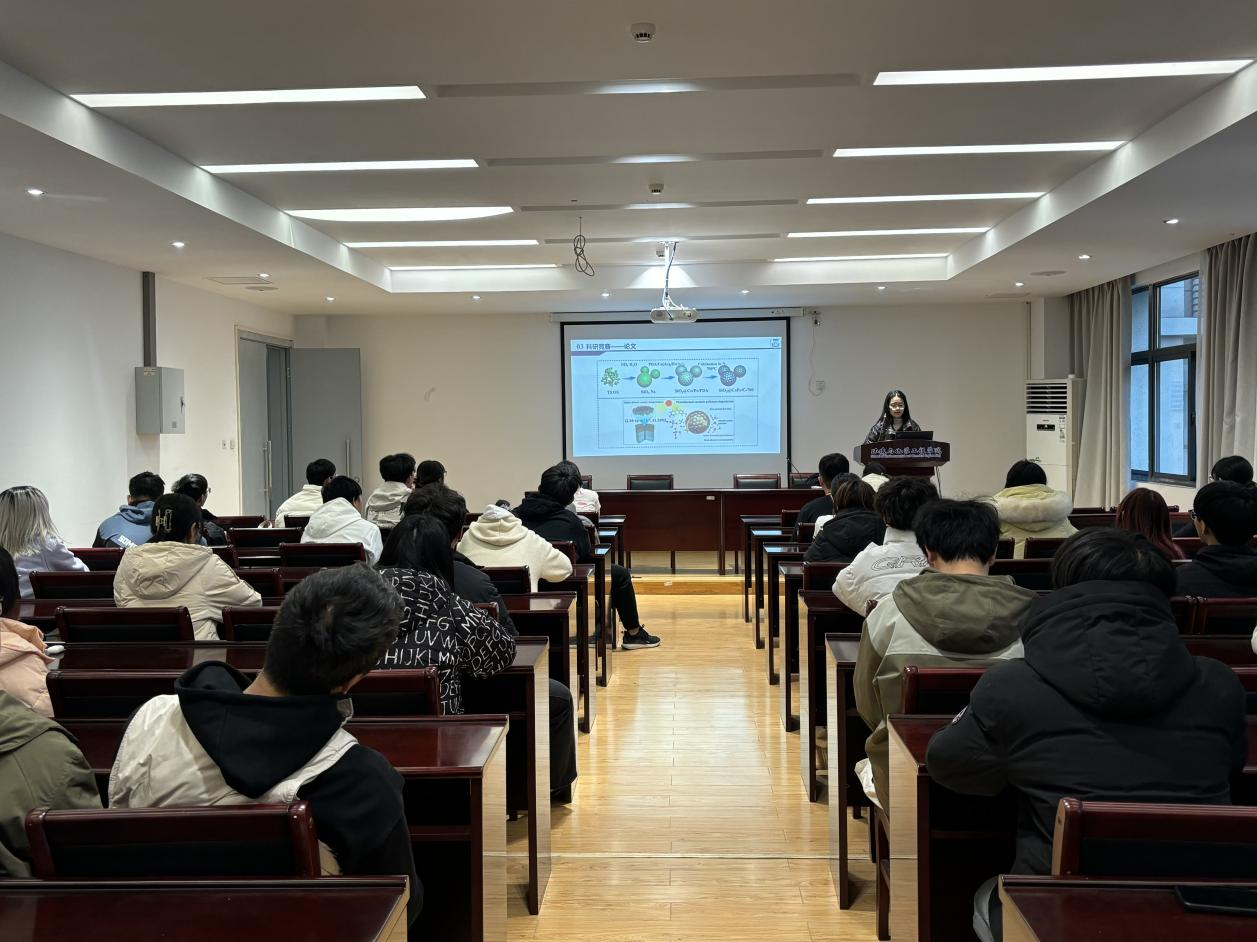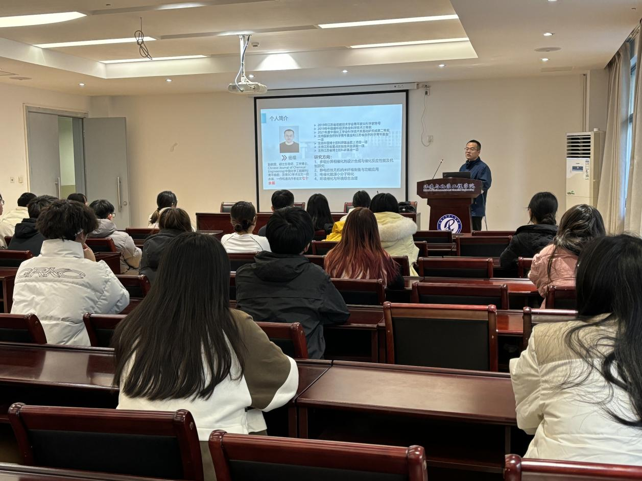 讲座中,杨福老师通过分析行业发展趋势及人类生存需要,指出:能源、环境、生命、健康对国家发展有极大影响,“生化环材”相关专业具有极大的科研前景。他围绕“本科生进实验室”的主题,通过分享5位课题组学生所取得的科研成果,提出要充分利用“蝴蝶效应”影响,切实投身实验室,不断汲取科研经验,锻炼科研能力,为后期研究生学习乃至整个科研生涯奠定基础。