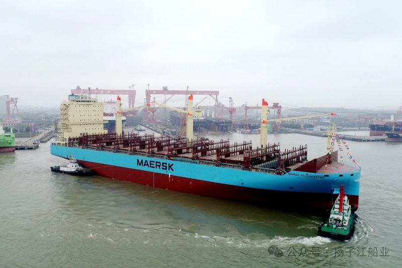 5月24日上午,扬子江船业集团新扬子造船为日本LEPTA船东建造的第十艘3500TEU集装箱船“MAERSK YELLOWSTONE”轮解缆离开船厂码头,交付投入运营,开启首航。