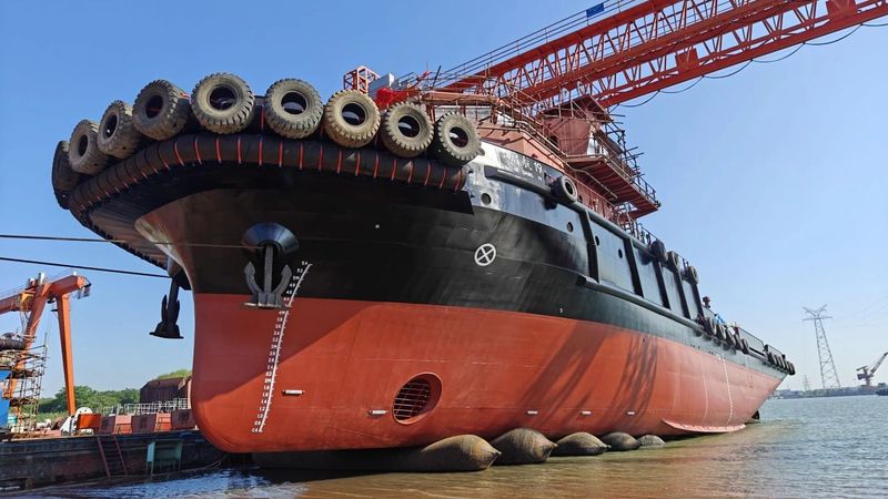 5月28日,由苏洋船厂承建的山东民达物流公司系列船舶中的65米溢油回收船顺利下水!该船总长65.8米,型宽16米,型深6米,主机功率为2400KW×2,为全焊接钢质可调桨推进的多功能船,由二台船用柴油机分别驱动两台带导流管可调桨推进装置。能在近海协助大轮靠离码头作业,具有消防作业能力,还具有溢油回收功能及布放围栏功能。在满足自身使用需求的前提下,能够向增压平台和其他船舶供给燃油、淡水。航速不小于78吨,续航力不小于800海里。(江苏苏洋船舶)