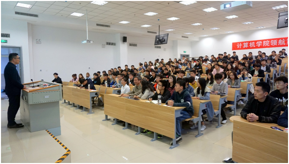 10月15日下午,计算机学院在文理大楼102教室开展了“领航•开学第一课“,由生佳根教授主讲。计算机学院党委副书记吴健康老师、院团委张苏婷老师以及院学生青马工程骨干、2017-2019年级主要班干部、计算机和电信学院党课学员150余人参与。
