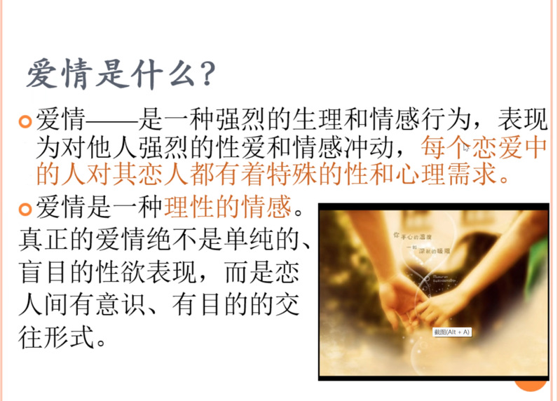 在讲座的最后,李老师对于爱情的本质为同学们进行了总结。通过几个简短的句子,描绘出了同学们心中对爱情的憧憬。在老师幽默诙谐的语言中,同学们对于恋爱的朦胧感逐渐消失,进一步了解了爱情的本质,树立正确的爱情观。