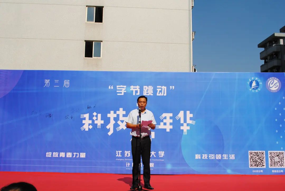 计算机学院党委书记、关工委主任韩斌教授致开幕词,介绍了近年来学院师生的科创成果。他说: