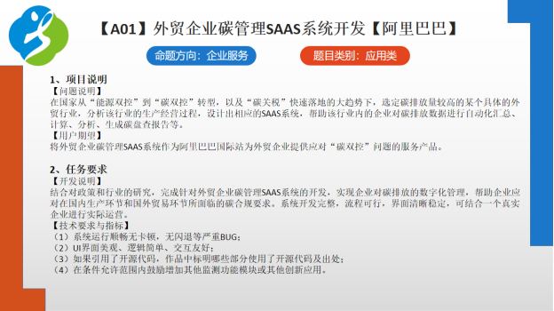 接下来,来自南京大学的甄泰航学长为同学们对40类企业命题类赛题进行了简单的介绍,让同学们对40类赛题的基本信息以及任务要求有了大致的认识。