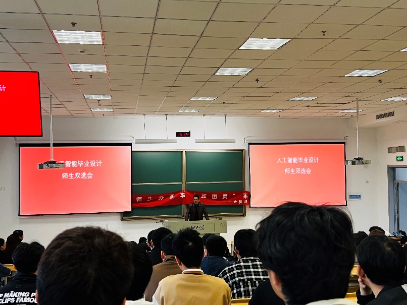 双选会由人工智能专业负责人祁云嵩教授主持,祁教授强调人工智能专业是新专业,学校学院非常重视人工智能专业的人才培养,人工智能专业的毕业设计课题必须与专业培养计划相关。此次双选会共有30多位老师积极申报课题并在会上做相关介绍,双选会结束之后,学生就感兴趣的课题与老师进行了深入的交流。
