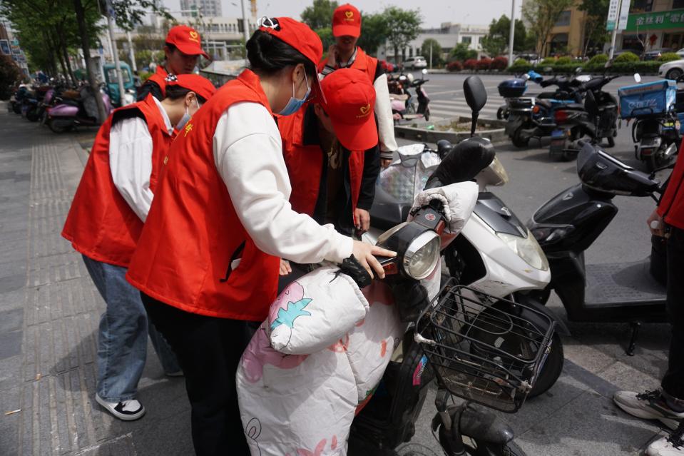 在巡逻途中,成员们路遇倒下的一众电瓶车,主动上前将其一一扶起,可见在细小的行为中能够潜移默化的增强安全意识和素养,提倡并赞扬这些行为。