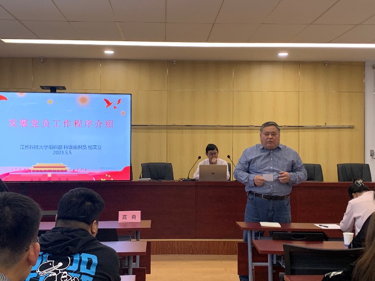 为深入开展学习贯彻习近平新时代中国特色社会主义思想主题教育,扎实推进党员教育培训工作,深化提升培训实效,进一步增强广大师生党员党性修养,5月5日上午,计算机学院党委邀请 组织部科级组织员杨文立老师,就《发展党员工作程序》进行专题讲解,以进一步明确党支部发展党员工作的流程与规范,解答发展工作过程中实际遇到的问题。计算机学院党委书记高尚出席并主持,船舶与海洋工程学院、能源与动力学院、经济管理学院、计算机学院、粮食学院组织员、支部书记、支部委员参加。