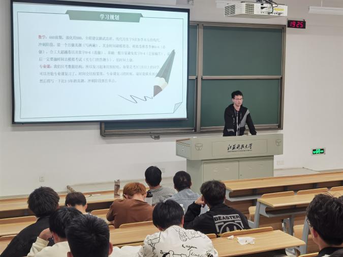 刘林松,拟录取于西安电子科技大学,攻读人工智能专业的学硕学位。刘林松主要是从各科安排和心态两个方面分享经验,他尤其注重心态问题,在他的激励的话语中,在场同学斗志昂扬,可谓少年自有凌云志,不负黄河万古流。