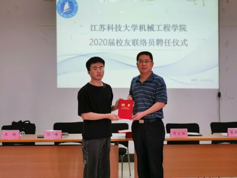 5月21日,机械工程学院在学院大会议室举行了2020届校友联络员聘任仪式,学校对外合作处处长佘建国,学院院长周宏根,对外合作处副处长、校友会副秘书长郭峰,学院党委副书记翟纯纯,校友会王微老师参加会议。