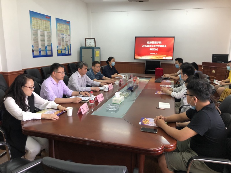 5月21日下午,经济管理学院举行2020届毕业生校友联络员聘任仪式。对外合作处处长佘建国,经管学院院长苏翔,校友会副秘书长郭峰,经管学院党委副书记杨海涛,校友会王微等老师参加了聘任仪式。聘任仪式由杨海涛主持。