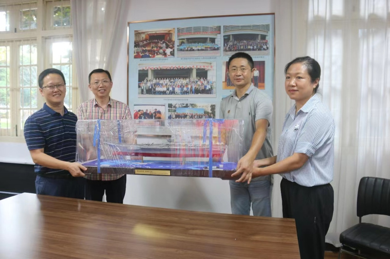 座谈结束后,校友代表向母校捐赠了船模,共同祝福学校和学院在新时代、新征程中能够劈波斩浪更进一步,同时也希望母校为船舶海工行业培养更多具有江科大特质的人才。