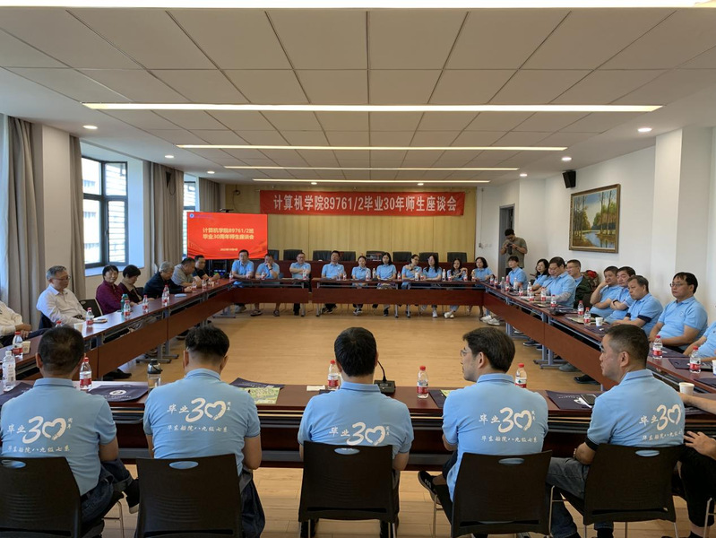正值国庆假期期间,计算机学院89761、89762班36位校友纷纷回到阔别已久的母校,参加毕业30周年活动,重温母校求学时光,再叙师生同窗情谊,交流学习工作心得,共同展望美好未来。计算机学院党委书记高尚、信化办主任韩斌、计算机学院党委副书记吴健康、计算机学院副院长史金龙,原班主任顾建业、胡广鹏和教师代表陈保香、刘镇、归宝琪、魏元凤、曾芬芳、王阿娣等老师参加交流活动。