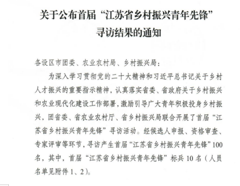 校友王宁荣获首届“江苏省乡村振兴青年先锋”