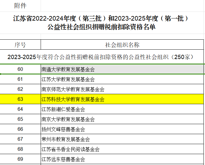 附件:江苏省2022-2024年度(第三批)和2023-2025年度(第一批)公益性社会组织捐赠税前扣除资格名单.xls