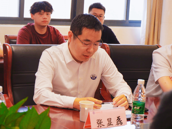 张显磊总经理向大家介绍了澳斯意环保工程(苏州)有限公司,他希望通过校企合作推动教育、人才、产业及资源的多元融合,通过设立奖助学金,激励学子不断进取,照亮环保梦想之路。