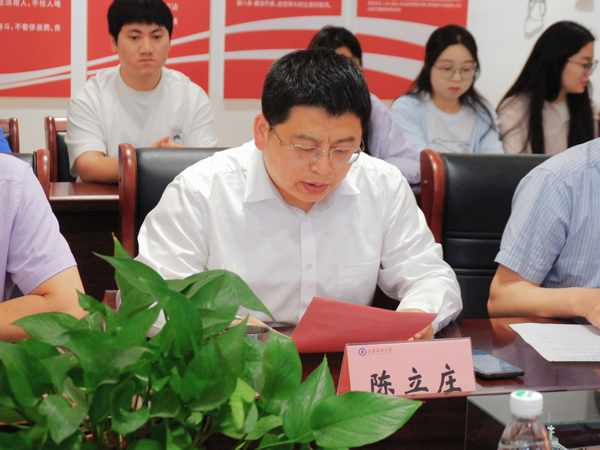 陈立庄院长致辞,他代表全院师生对澳斯意环保工程(苏州)有限公司表示热烈欢迎和衷心感谢,期待以此次捐赠为起点,继续深化与澳斯意的合作交流,共同推动学校教育事业与企业发展互融互促,取得更加丰硕的成果。同时,他也向各位获奖同学表示祝贺,勉励大家进一步发扬学院“求真务实、开拓创新、绿色环保、协调发展”核心理念精神,认真学习专业知识,敢于担当社会责任,永存感恩之心,以时不我待的奋进姿态磨砺无悔青春,做一个对国家、对社会有所作为的时代新人。