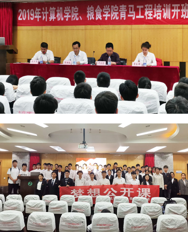为响应共青团中央号召,进一步健全大学生骨干培养体系,做好大学生骨干培养工作,5月15日下午,计算机学院、粮食学院联合举行2019年青马工程培训开班仪式,粮食学院党总支书记、关工委主任李炳义,计算机学院党委副书记、关工委副主任于立东,粮食学院团委书记、关工委秘书长康乐群及两个学院学生骨干参加,培训由计算机学院团委书记、关工委秘书长温大勇主持。