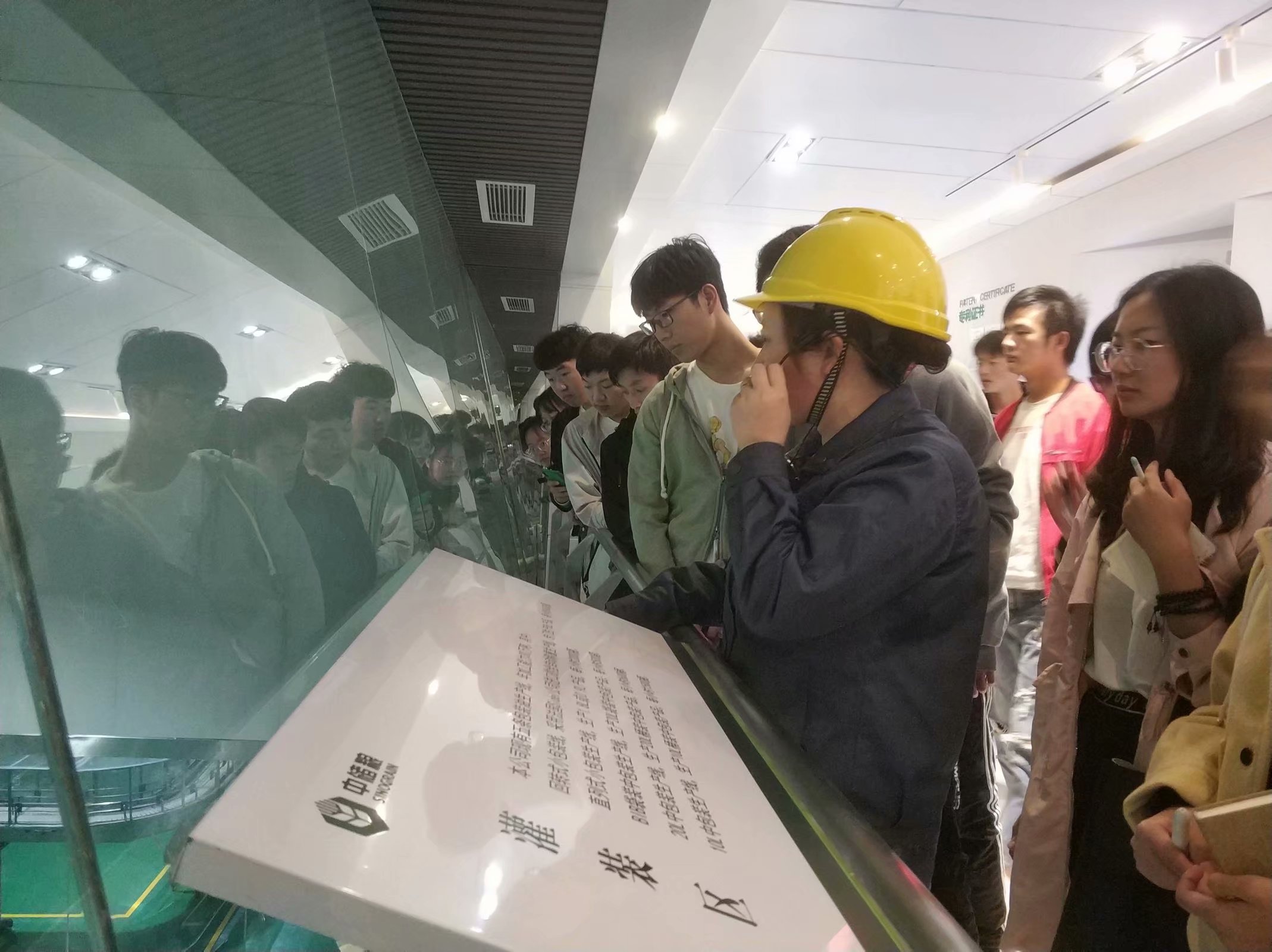 在中储粮镇江粮油质检中心的参观通廊,讲解员带同学们通过模型,演示了粮油从出产到罐装的全过程;了解了压榨车间、精炼车间、包装油生产的工艺流程及关键控制点;认识了吹瓶设备、纸箱成型机设备、贴标机设备等;同时,同学们在产品展览专柜及成果展示专柜了解了中储粮油脂基地的科研成果及所取得的奖项,也从中储粮的企业理念中学习到了想要发展好一个企业,离不开上下一心的团结协作与勤奋严谨,同时更需要有一个清晰明了的架构与分工。
