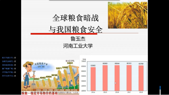 为培养学生“粮”心意识,开拓世界粮食大局观,帮助学生更好的了解粮食行业现状,粮食学院于5月22日晚七点开展“培育粮食安全为己任的情怀”主题线上讲座,本次讲座特邀中国粮油学会储藏物有害生物防治科学传播专家团队首席专家鲁玉杰教授主讲,粮食学院大二、大三全体学生参加。