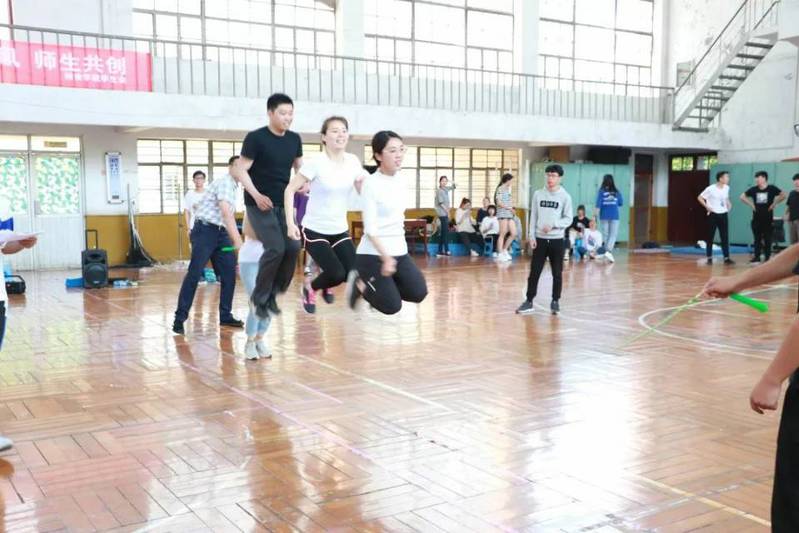 本次师生趣味运动会活动新颖、内容丰趣,在“抢凳子”“跳大绳”“吃西瓜”“滚铁环”等传统项目之余,又增加了“打地鼠”“穿越呼啦圈”“手脚并用”等精彩活动。学生队和教师队展开激烈PK赛,既饱含趣味性,又充满挑战性。在“抢凳子”“滚铁环”项目中,教师队的精彩表现让在场学生掌声不断,呼声连连;“拔河比赛”这个充满竞争性的游戏更是将本次趣味运动会推向高潮,同学们团结协作、齐头并进,场内助威声响亮化一。