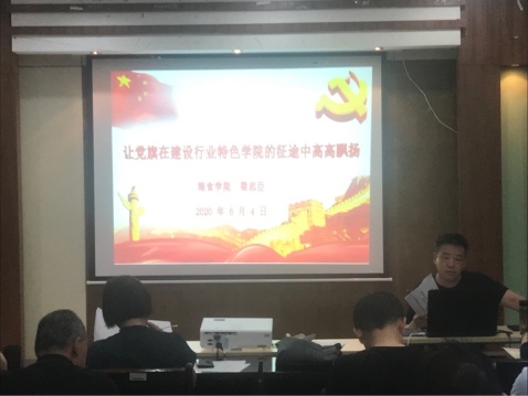 6月4日下午,粮食学院党总支开展教工党支部集中学习活动,此次党课紧密围绕“让党旗在建设行业特色学院的征途中高高飘扬”主题展开。党课由学院党总支书记梁忠臣主持,粮食学院教工党支部全体党员及四名学生党员参加党课学习活动。