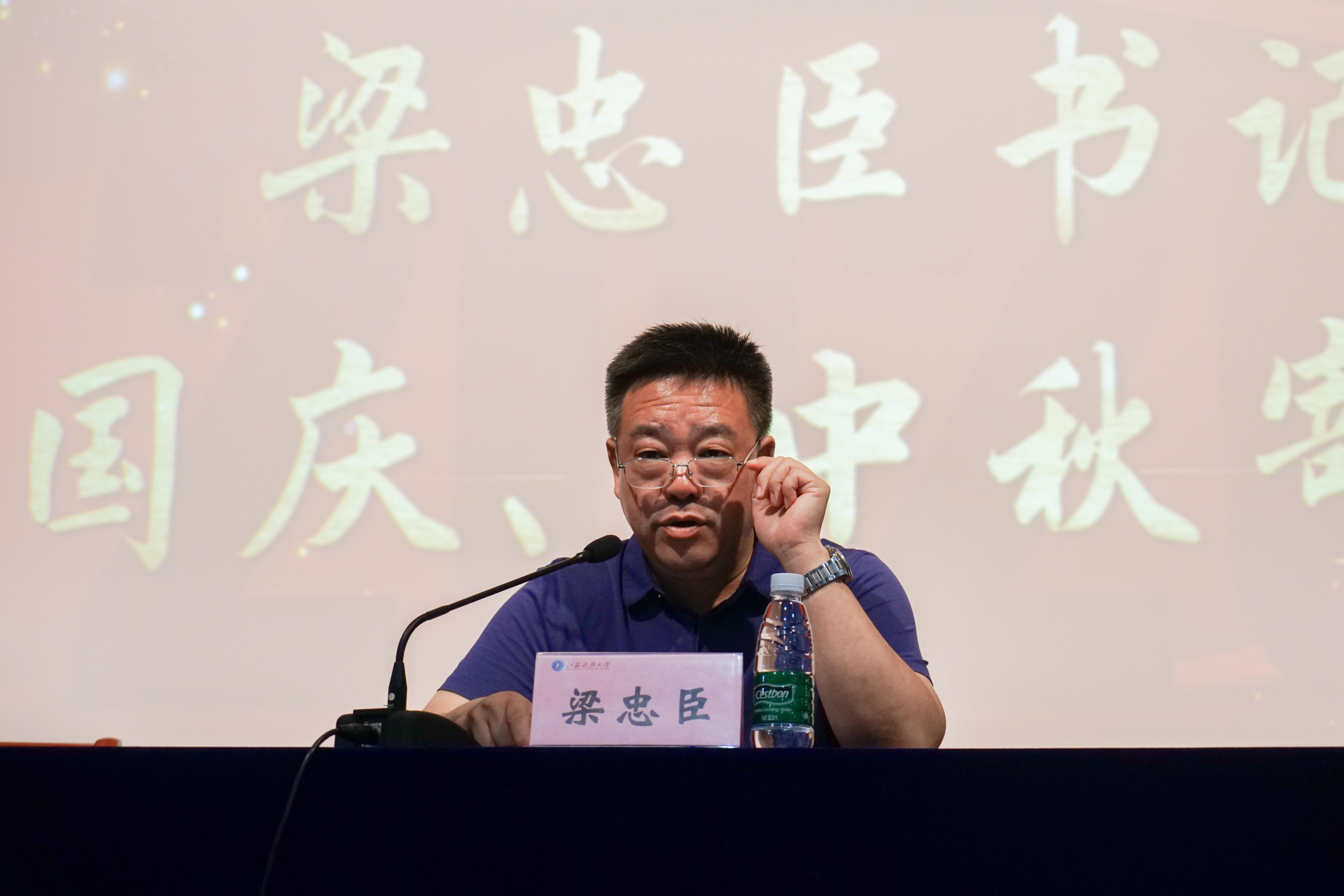 党总支书记梁忠臣代表学院对新生的到来表示热烈欢迎,他希望2020级粮食学院新同学明确“大学是什么”,“为什么上大学”,“来大学做什么”。梁书记以一位老学工的身份寄语大家,要做一个政治立场坚定的人,做一个人格健康健全的人,做一个自信自律的人。希望同学们能够主动适应新环境,尽快实现新转型,努力学好新知识,树立奋斗目标,在大学崭新的舞台上开启人生新篇章。