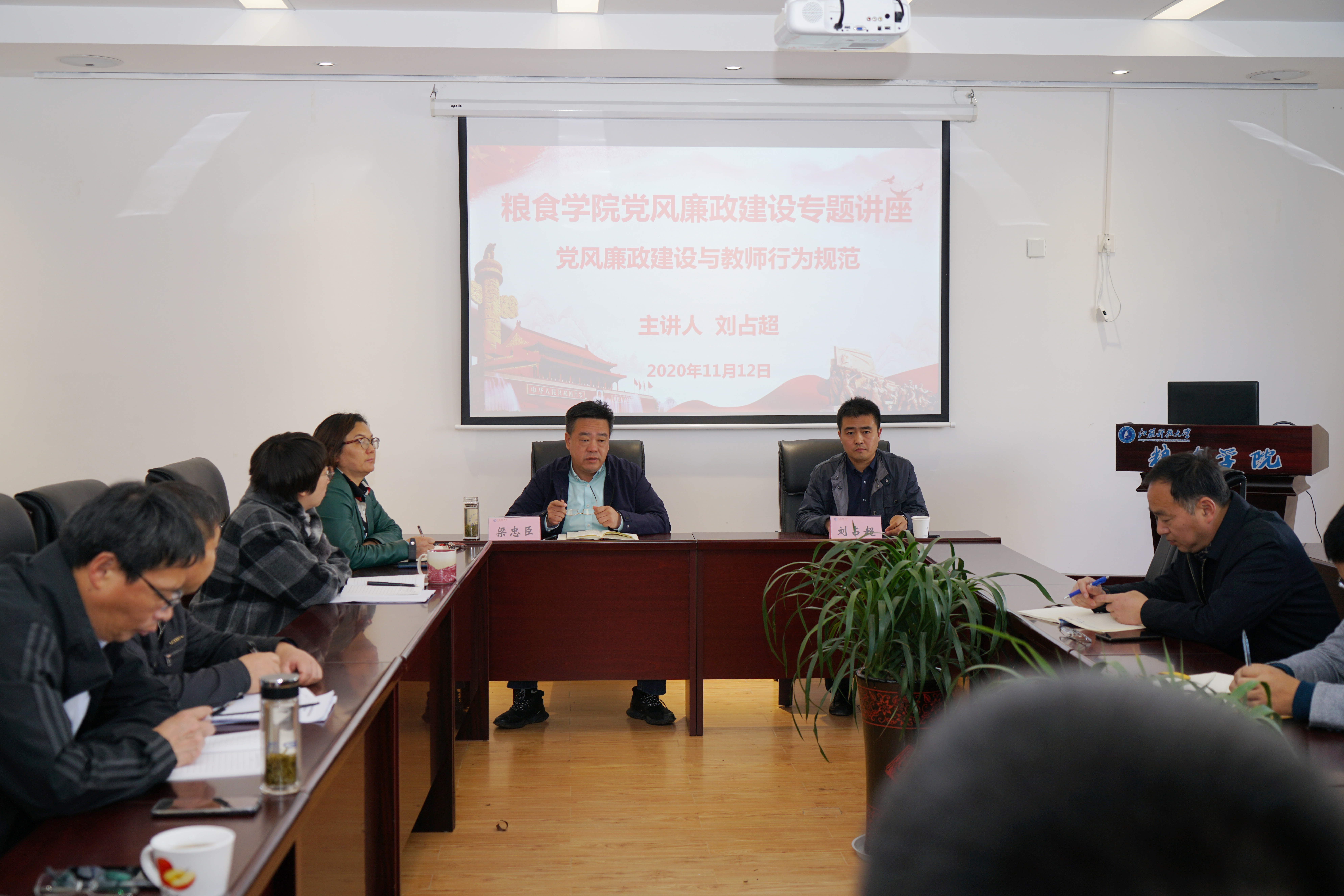 11月12日下午,粮食学院邀请学校纪委审查调查处处长刘占超同志在436会议室为粮食学院全体教师做了一场题为“党风廉政建设与教师行为规范”的专题讲座。