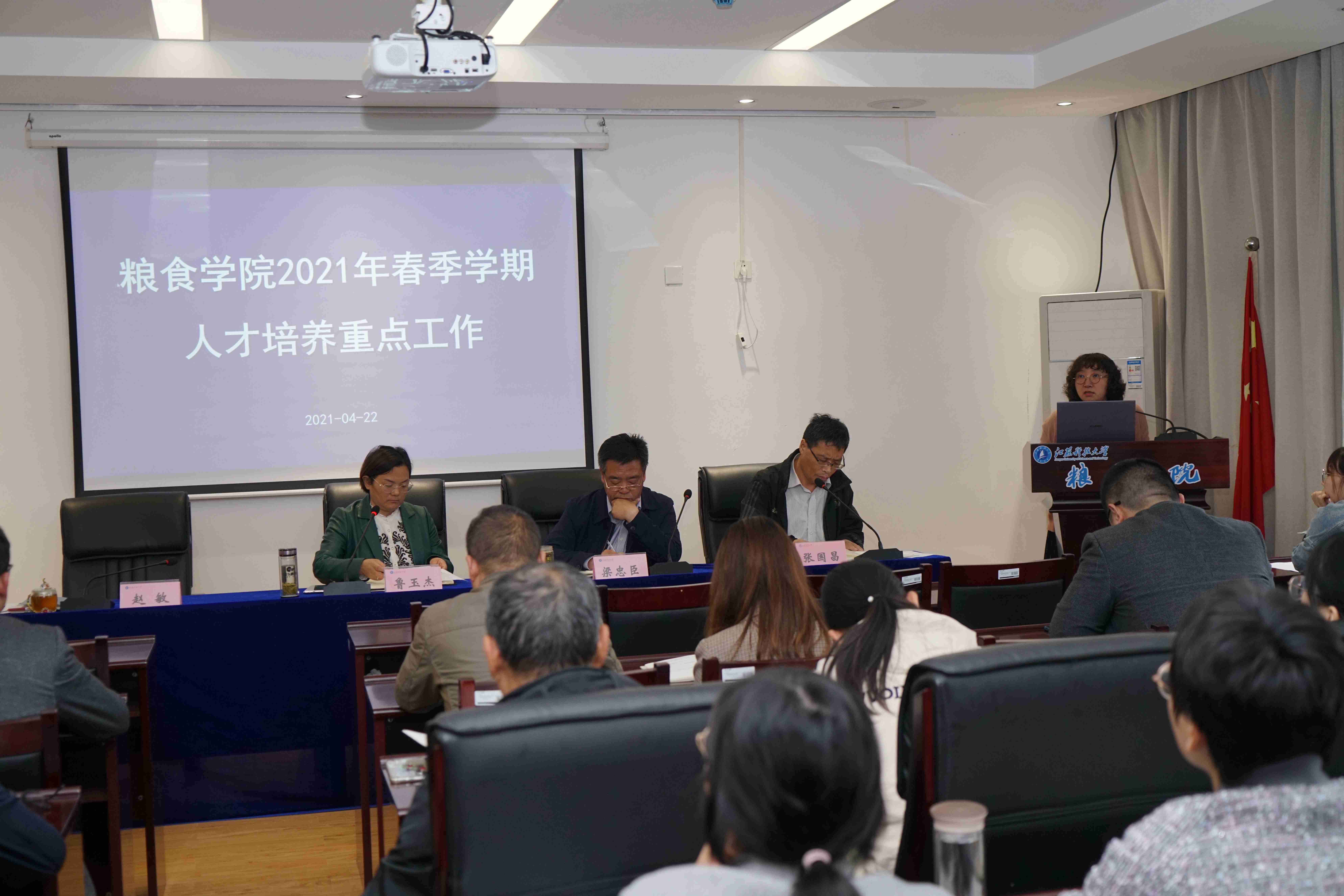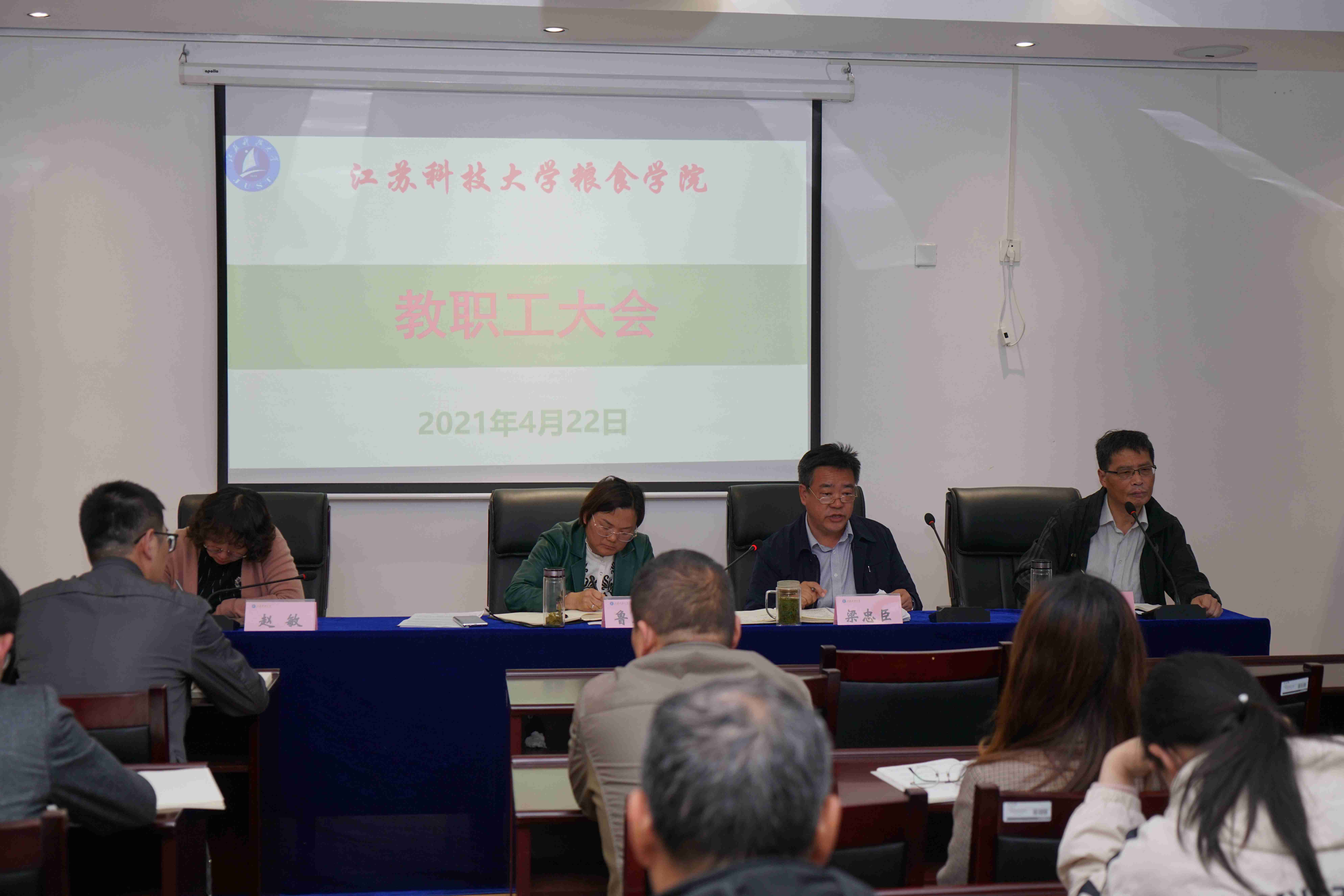 4月22日下午,粮食学院召开全体教职工大会,布置学院重点工作。粮食学院院长鲁玉杰、院党总支书记梁忠臣、副院长张国昌、副书记赵敏及学院全体教职工参加会议。