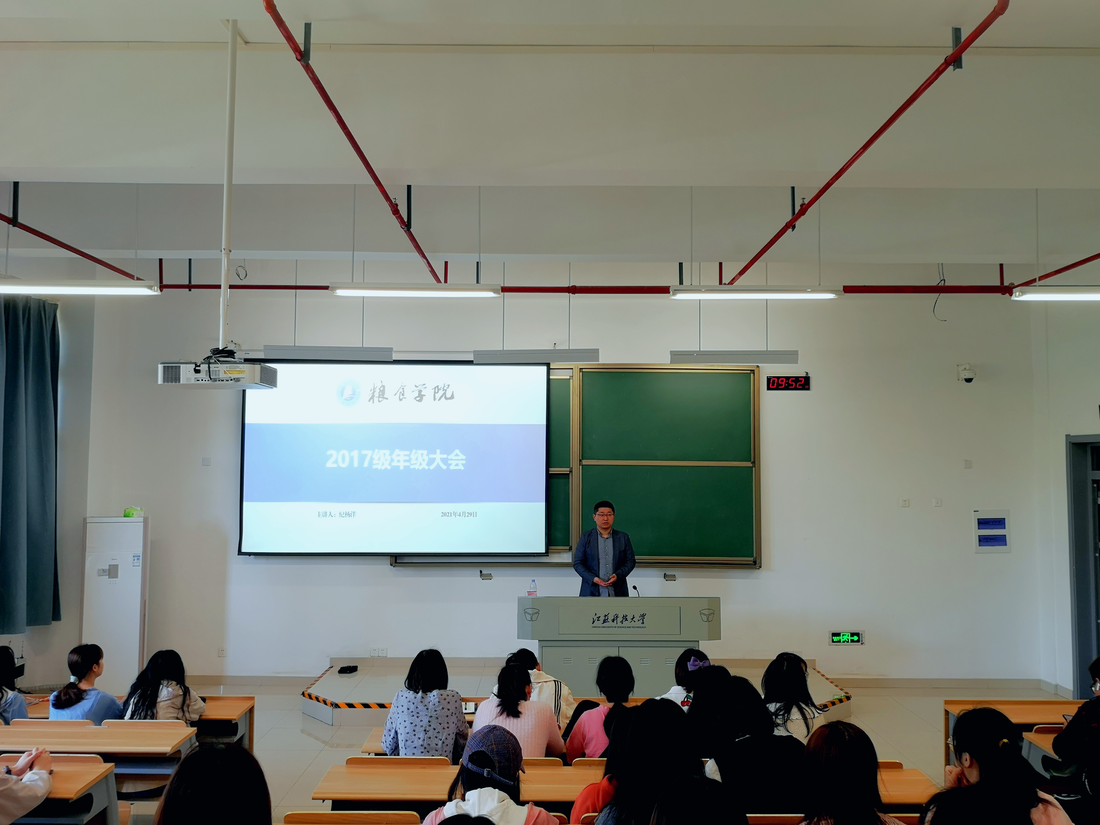 为提高学生安全意识,切实分析目前就业升学形势,做好应届毕业生毕业相关工作,4月29日,粮食学院于16号楼103教室开展2017级年级大会,本次会议由辅导员纪杨洋老师主持。