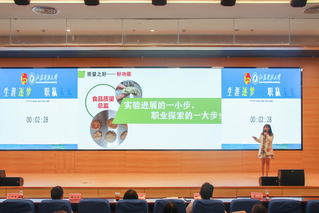 在初赛阶段收到来自16个学院的近40份参赛作品,经过评审,共有来自各学院20名选手晋级决赛。决赛阶段包括文字作品评审、现场陈述及问答两个部分。主题陈述中选手结合PPT演示文稿,对自我认识和外部环境进行了全面的分析,提出了自己的职业目标、发展路径和行动规划,并从可操作性和现实意义等方面进行了细致阐述,最后由评委根据选手阐述进行现场提问,根据选手综合表现为选手打分。本次大赛由粮食学院承办,历时一个学期,得到全校各院系老师和同学们的关注,历经生涯规划指导和书面评审,体现了我校生涯教育的成果。