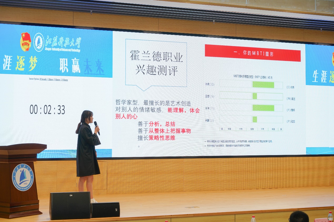 晋级的20名优秀选手,通过个人展示和现场答辩,讲述了个人职业生涯规划,向师生呈现了大学生多样化的成长路径和理想抱负。针对场上选手的职业生涯规划,评委们指出了就业生涯规划过程中同学们常见的问题,并给出了各自的建议。比赛最终决出了特等奖、一、二、三等奖及优胜奖。姜城红同学荣获本次比赛的特等奖。代雯、张琛瑶同学获得本次比赛的一等奖,苟森林、李佳洺、洪逸心同学获得本次大赛二等奖,唐芝艺、王皓曦、俞丁同学获得本次大赛三等奖,赵汀、张陈晨、夏雪、程凯雯、丁莹、于佳弘、王江超、沈凯慧、曹阳洋同学获得本次大赛优胜奖。