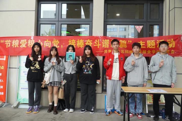 10月15日,粮食学院青年志愿者协会以及金谷义工站的学生在 长山校区东、西食堂张贴宣传海报、拉横幅,摆摊义卖自制的奇亚籽饼干,宣传普及“节粮爱粮”“健康饮食”知识。