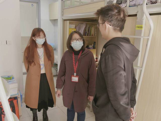 自3月10日以来,学院党总支副书记赵敏、辅导员纪杨洋、武兆文老师3名专职学工人员坚持每天深入走访学生宿舍,当面叮嘱学生要严格按照学校防疫工作通知要求,配合学校做好相关防疫工作,关注防疫工作动态,保持宿舍卫生清洁、通风,不互相串门,注意个人防护。在宿舍的同学并未因疫情的出现而阻挡前进的步伐,宿舍的卫生情况良好,做到了室内保持窗户通风的状态,地面干净,物品摆放整齐。